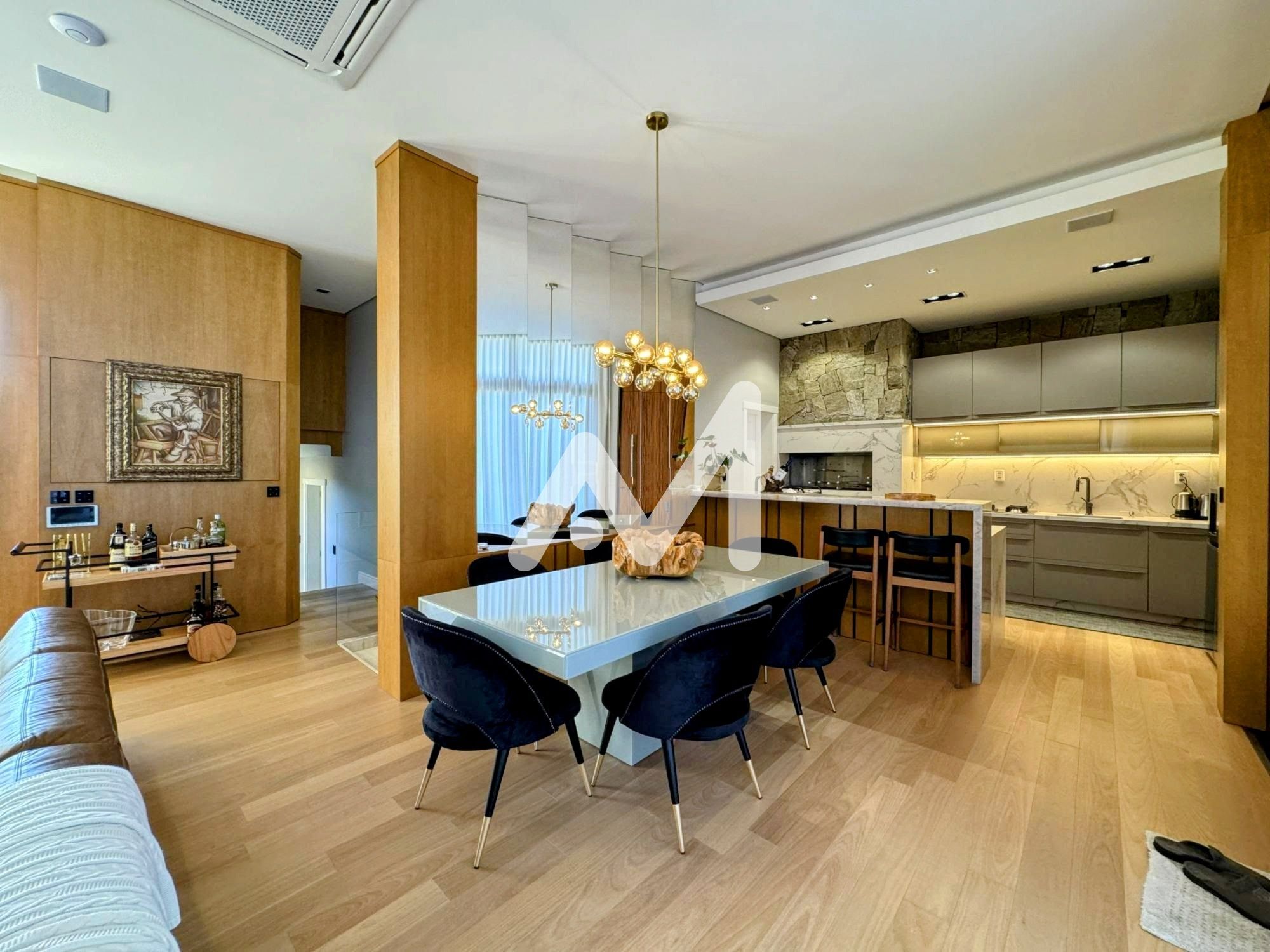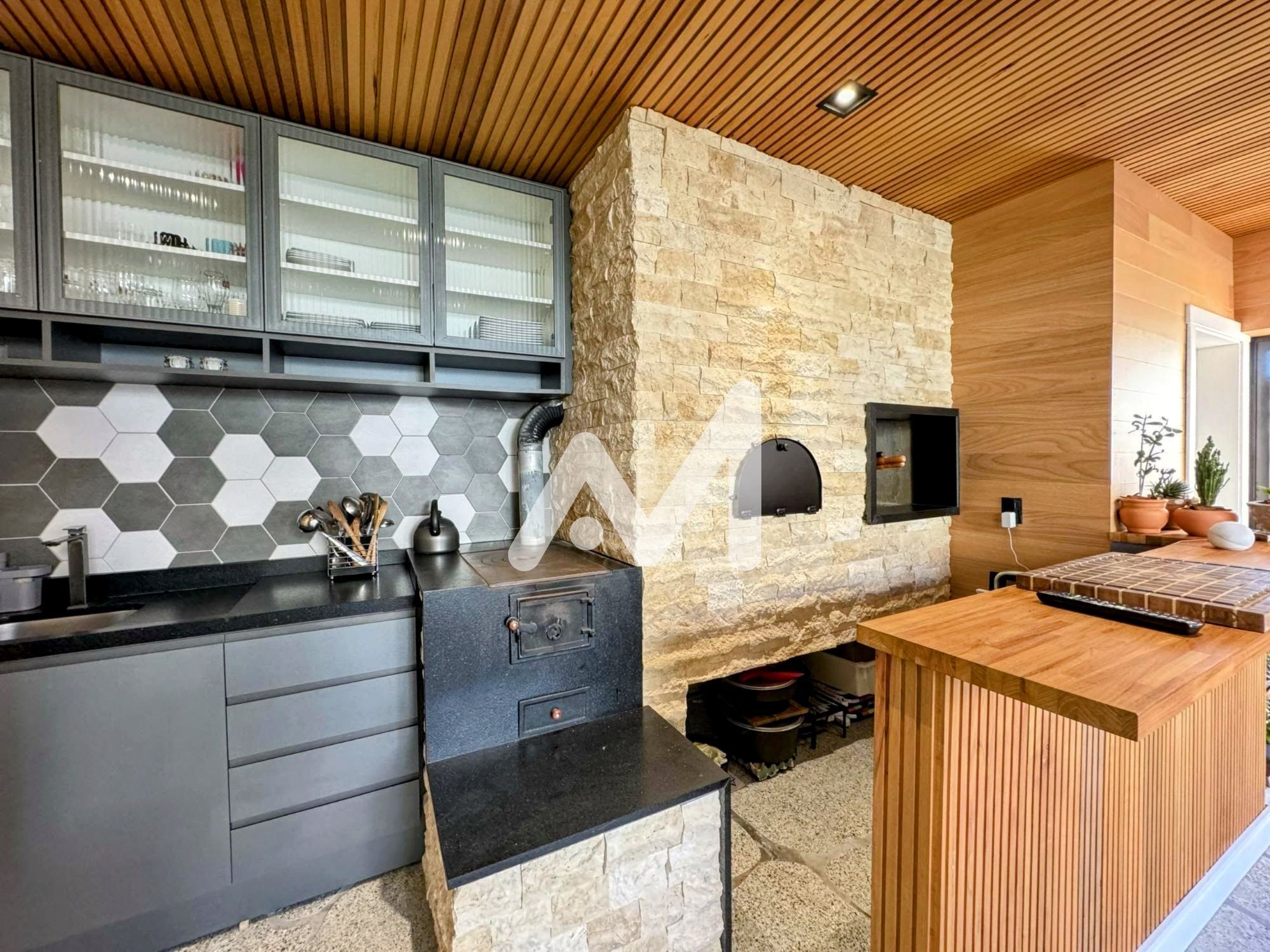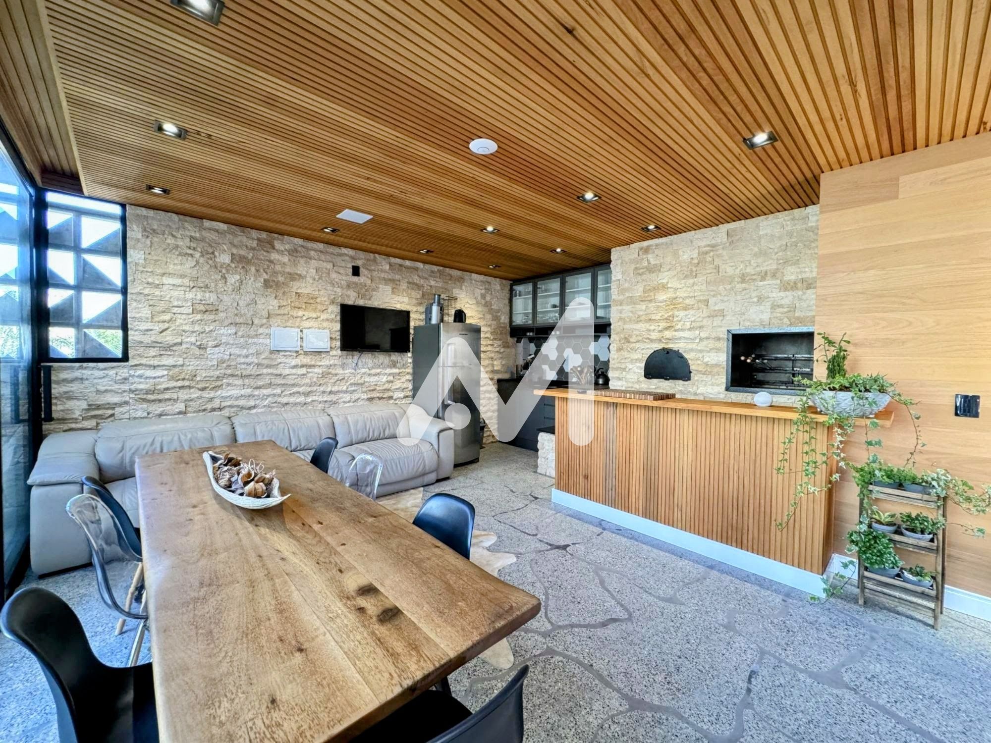 Características do Imóvel: Aquecimento central, Ar condicionado, Armário cozinha, Armário embutido, Banheiro social, Bar, Churrasqueira, Closet, Cozinha, Cozinha americana, Cozinha gourmet, Deck molhado, Despensa, Espaço gourmet, Forno de pizza, Janela grande, Jardim, Lareira, Lavabo, Lavanderia, Móveis planejados, Piscina, Portão eletrônico, Pátio, Pé direito elevado, Residência inteligente, Sala de estar, Sala de jantar, Varanda, Área de serviço
