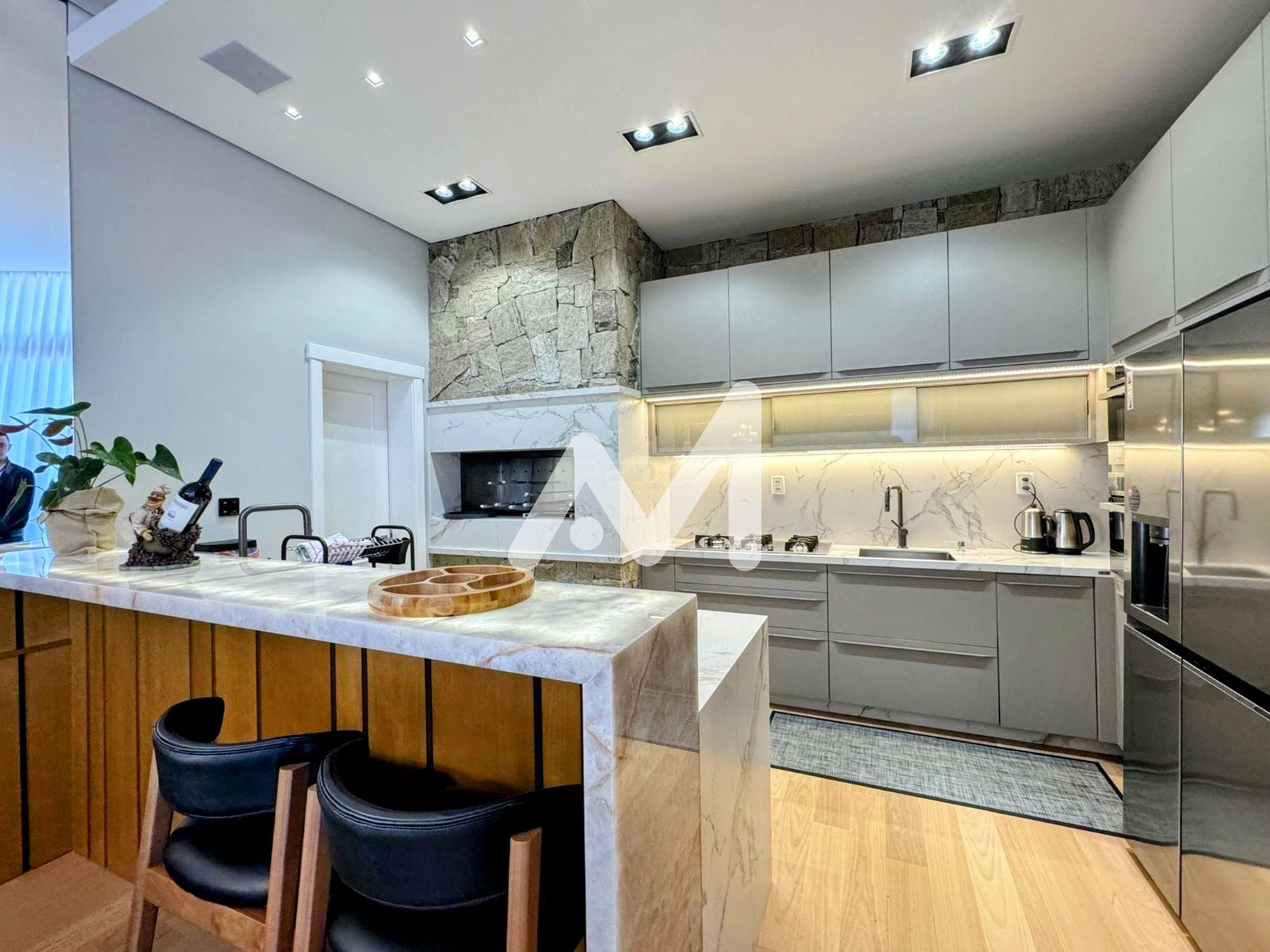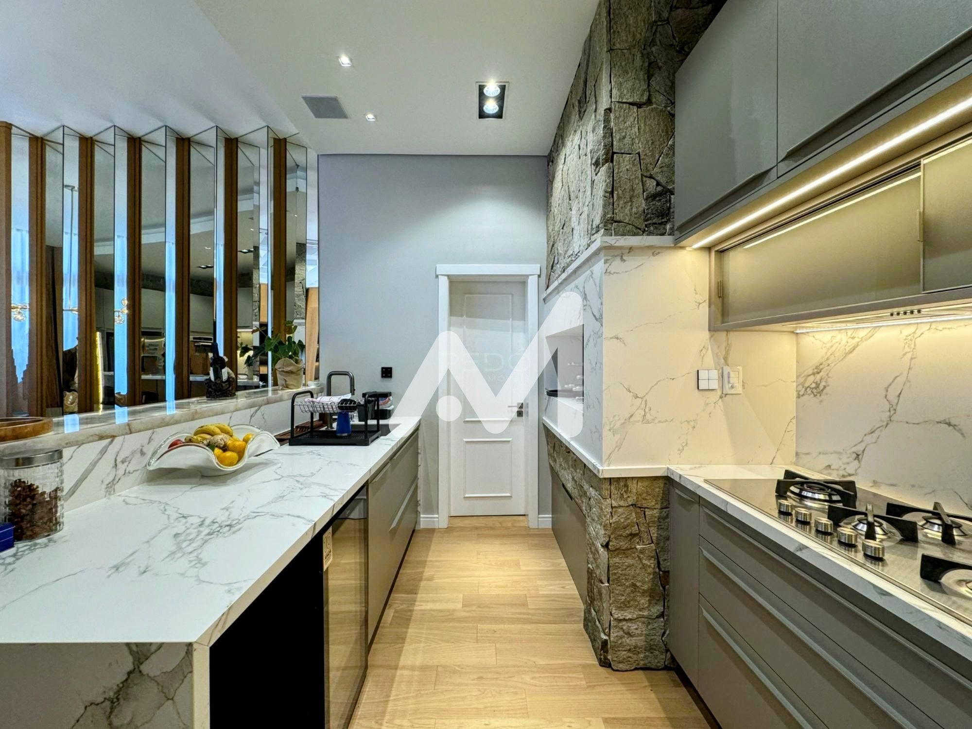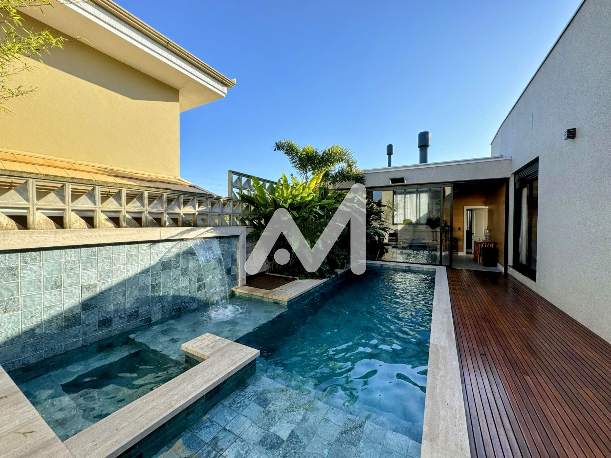 Características do Imóvel: Aquecimento central, Ar condicionado, Armário cozinha, Armário embutido, Banheiro social, Bar, Churrasqueira, Closet, Cozinha, Cozinha americana, Cozinha gourmet, Deck molhado, Despensa, Espaço gourmet, Forno de pizza, Janela grande, Jardim, Lareira, Lavabo, Lavanderia, Móveis planejados, Piscina, Portão eletrônico, Pátio, Pé direito elevado, Residência inteligente, Sala de estar, Sala de jantar, Varanda, Área de serviço