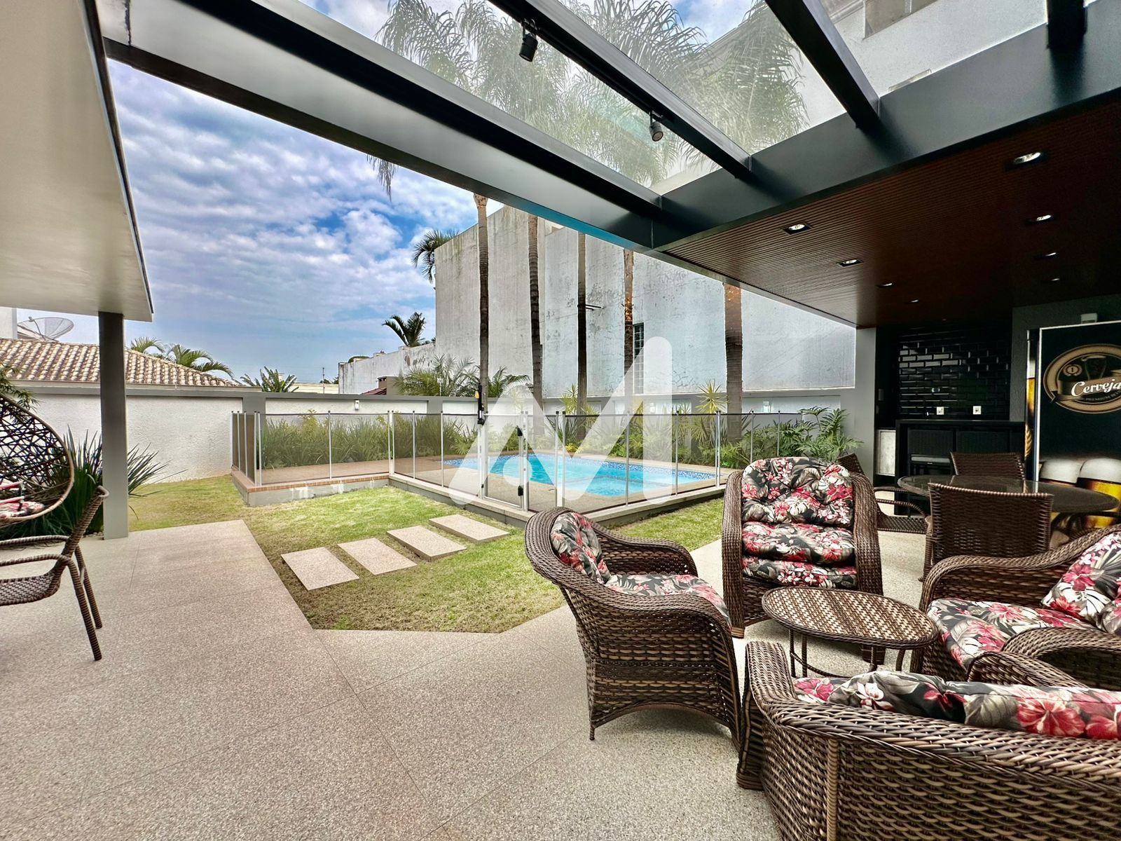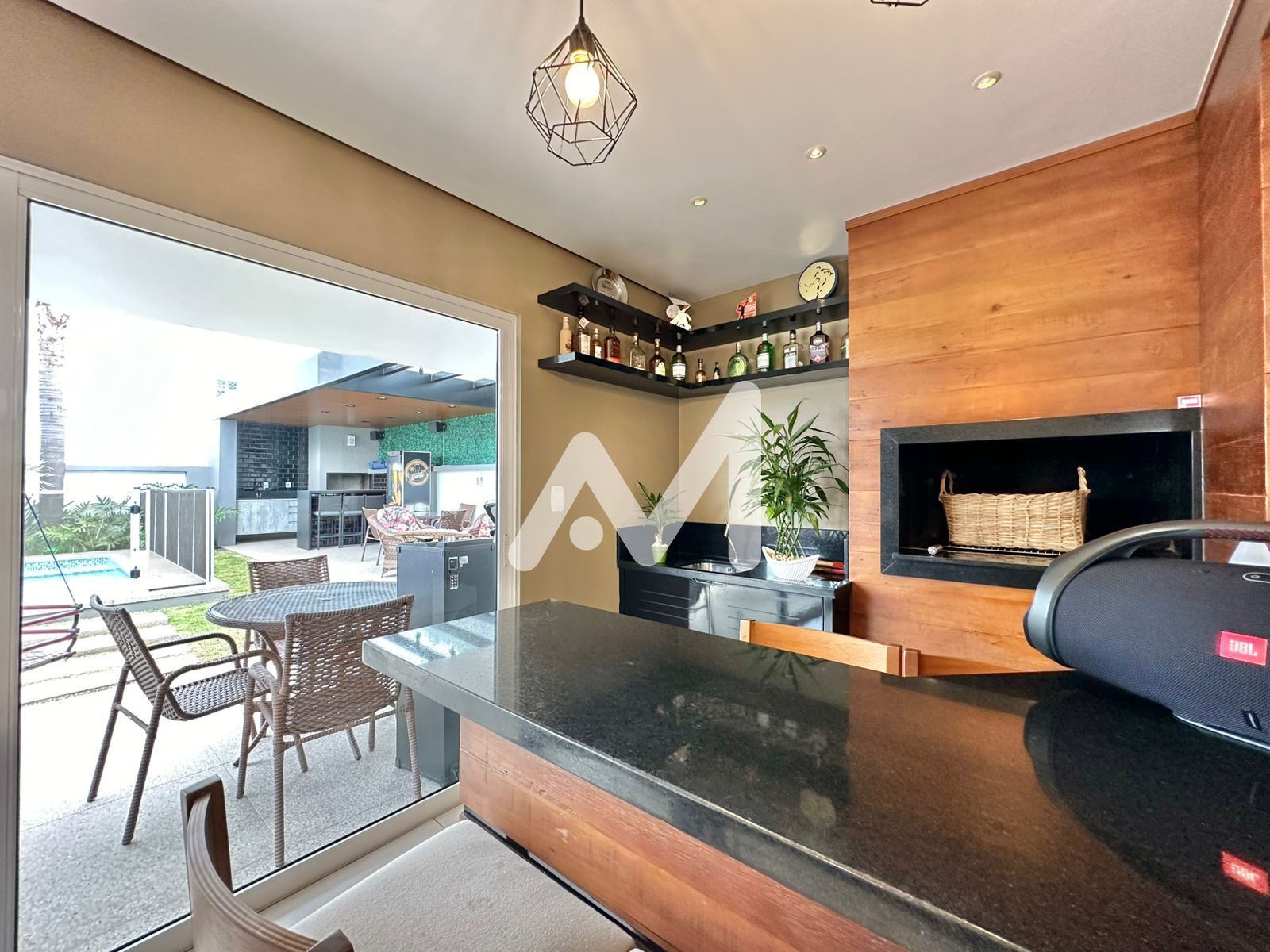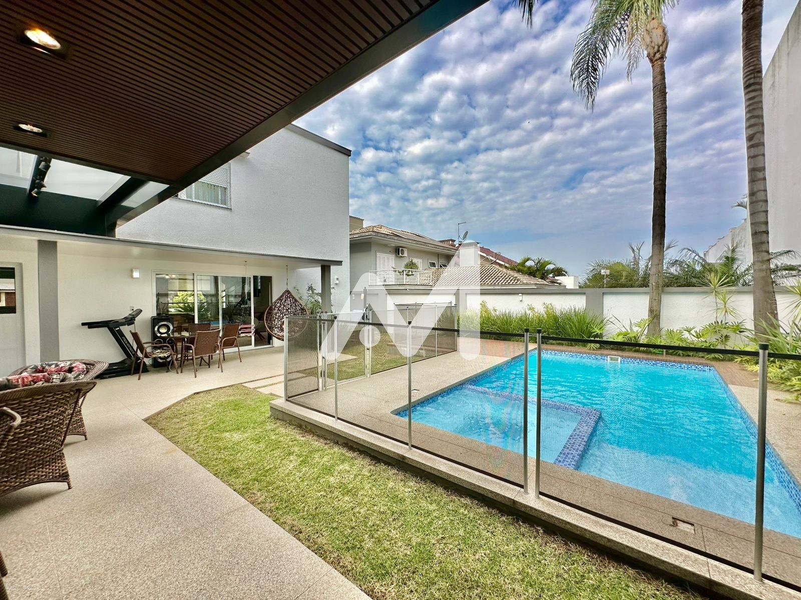 Características do Imóvel: Ar condicionado, Armário cozinha, Banheiro social, Churrasqueira, Cozinha, Cozinha gourmet, Cozinha grande, Despensa, Escada, Escritório, Espaço gourmet, Estar social, Interfone, Janela grande, Jardim, Lareira, Lavabo, Lavanderia, Luminárias, Muro, Móveis planejados, Piscina, Portão eletrônico, Pátio, Pé direito elevado, Sacada, Sala de estar, Sala de jantar, Varanda, Varanda fechada com vidro, Varanda gourmet, Área de serviço