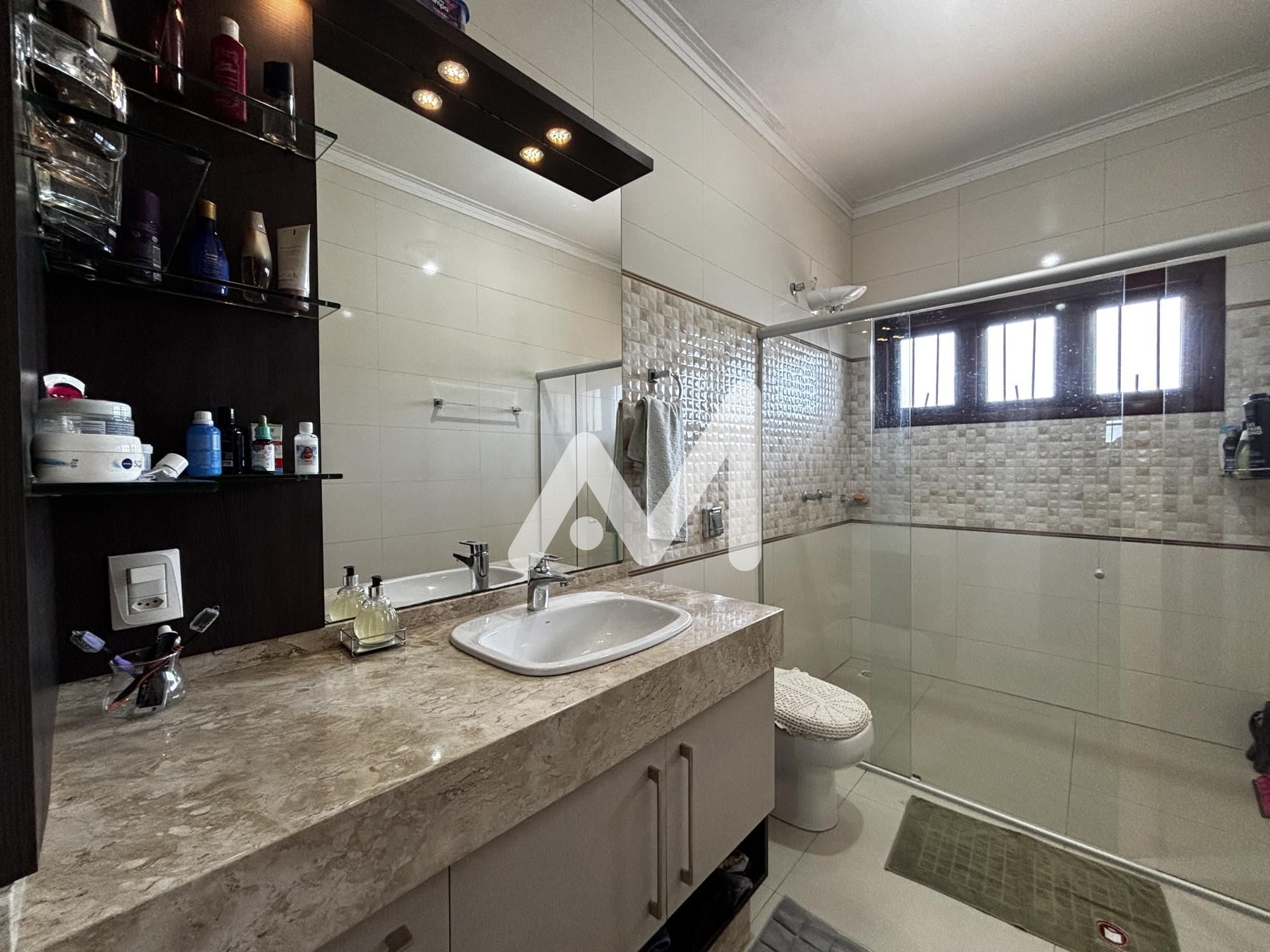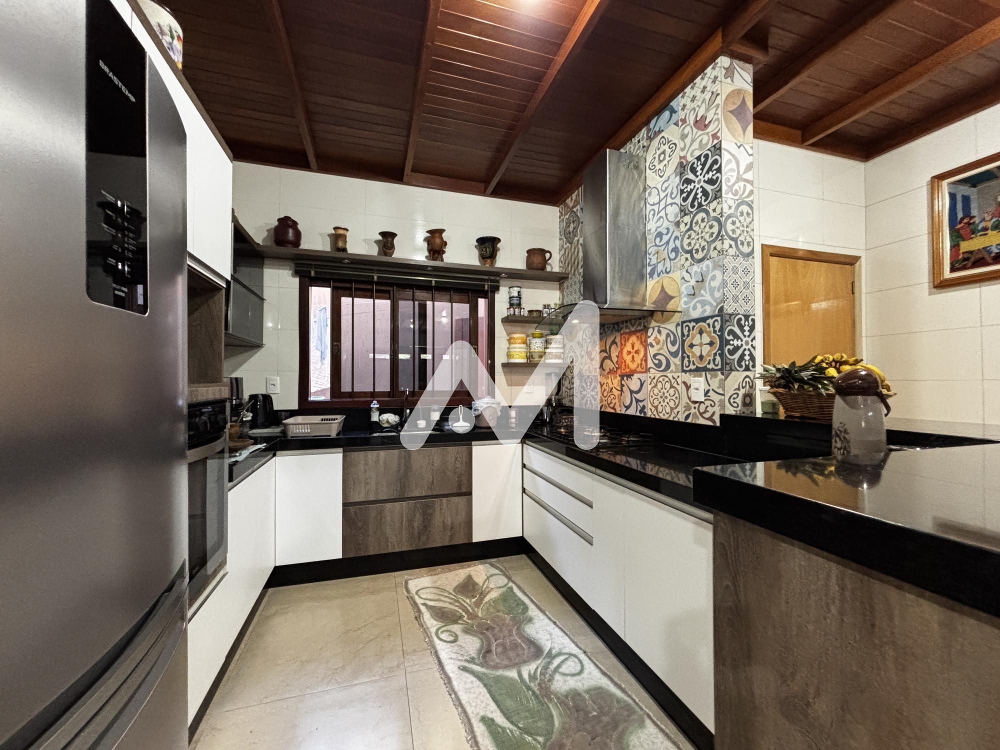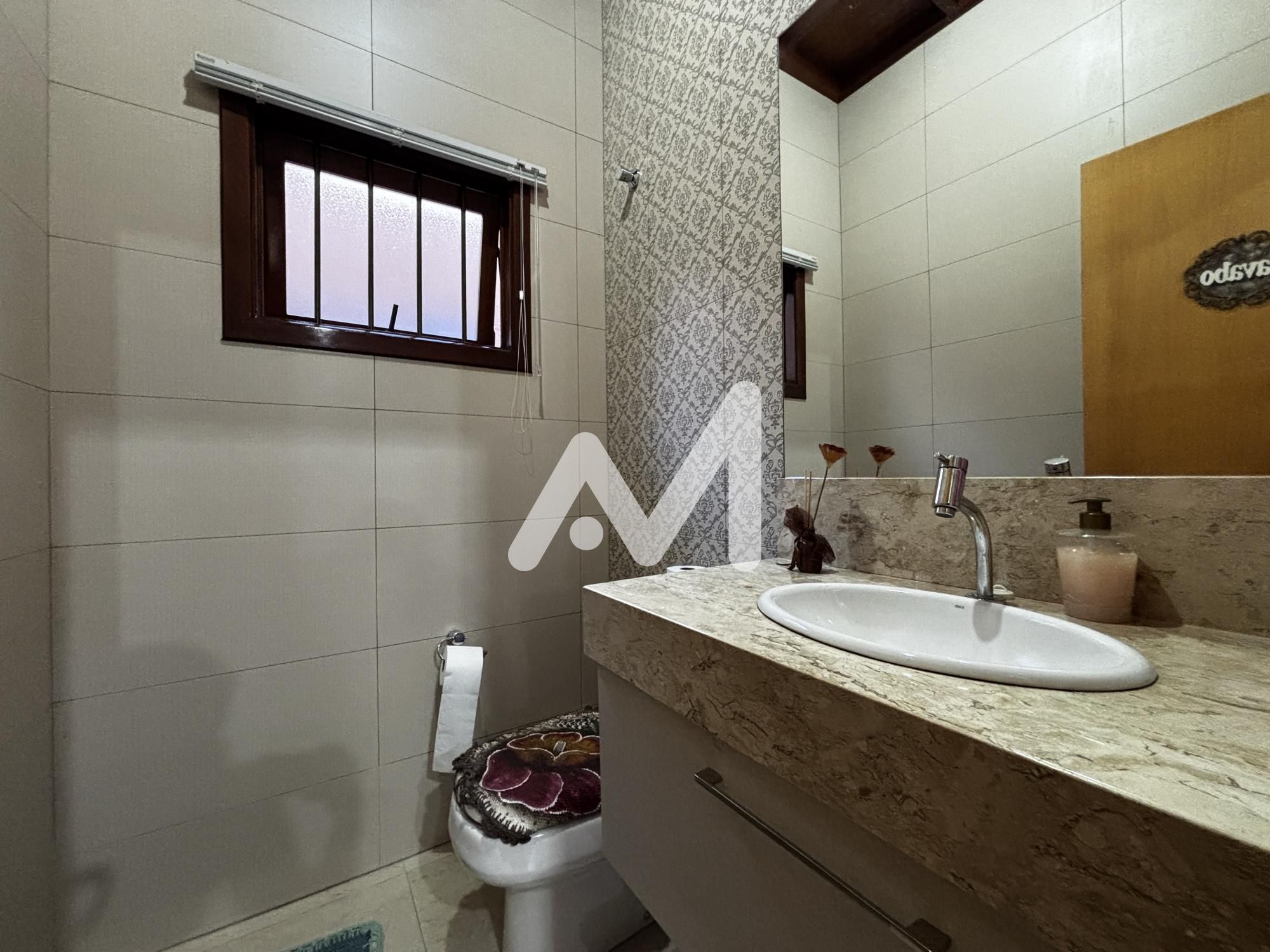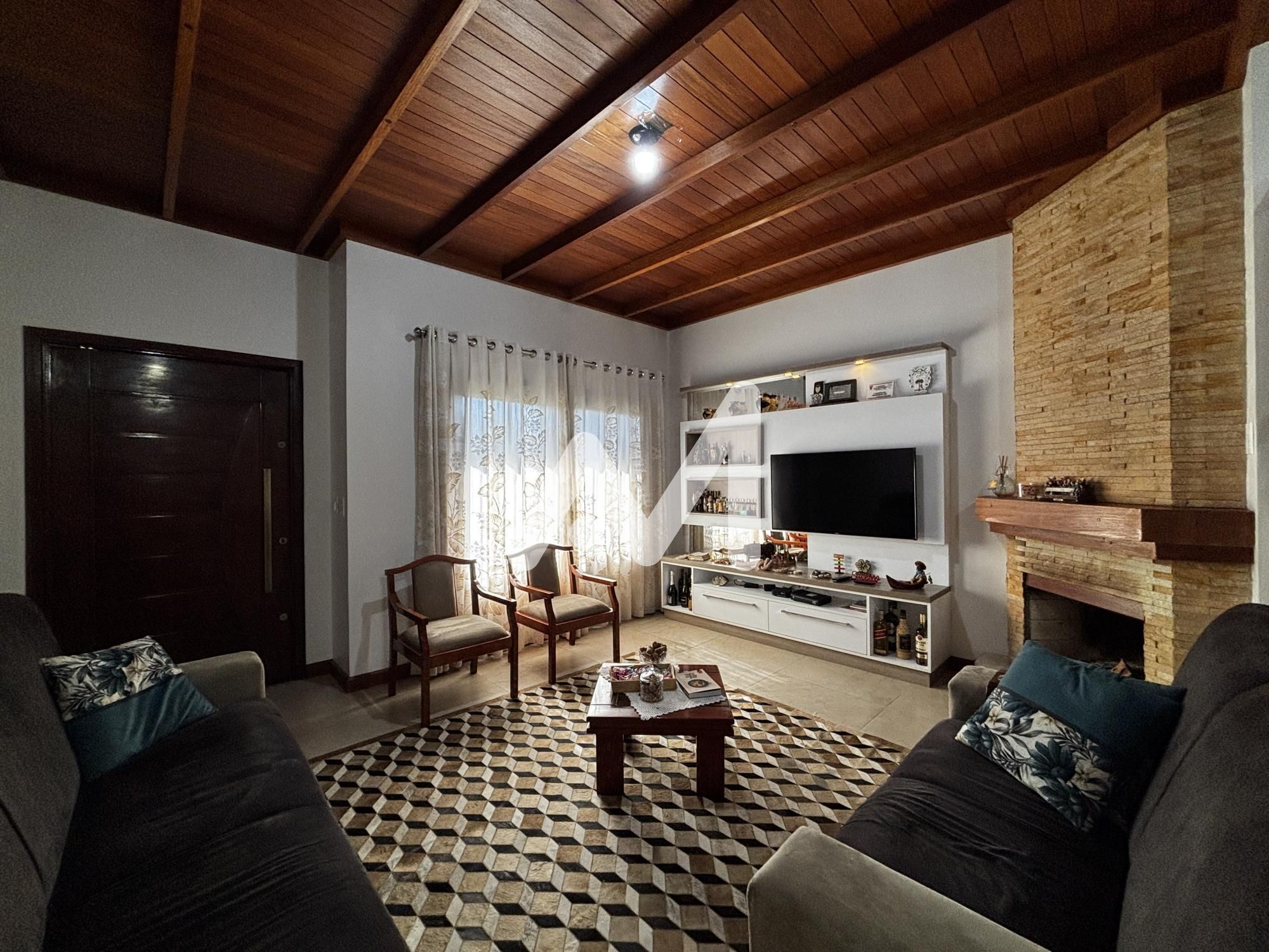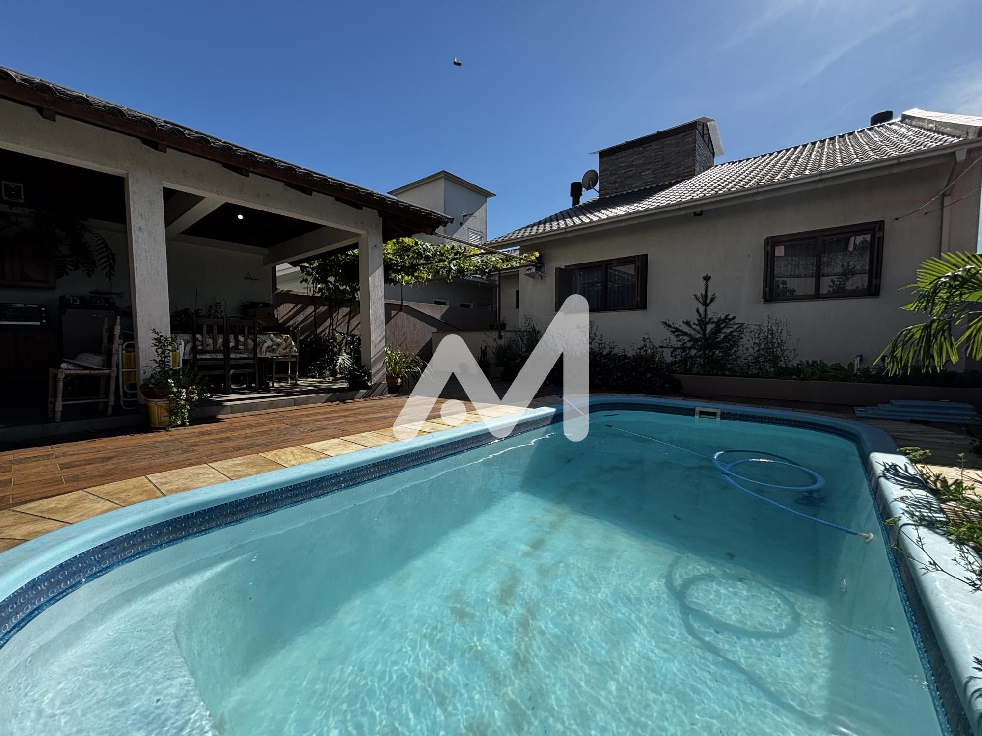 Belissima casa semimobiliada com móveis planejados, composta por 03 dormitórios, sendo 01 suíte, cozinha, sala de estar/jantar, área de serviço, lavanderia, quintal, amplo pátio com piscina, quiosque, churrasqueira, lareira, acabamentos e aberturas em madeira nobre, banheiro social, lavabo, garagem para 02 carros.