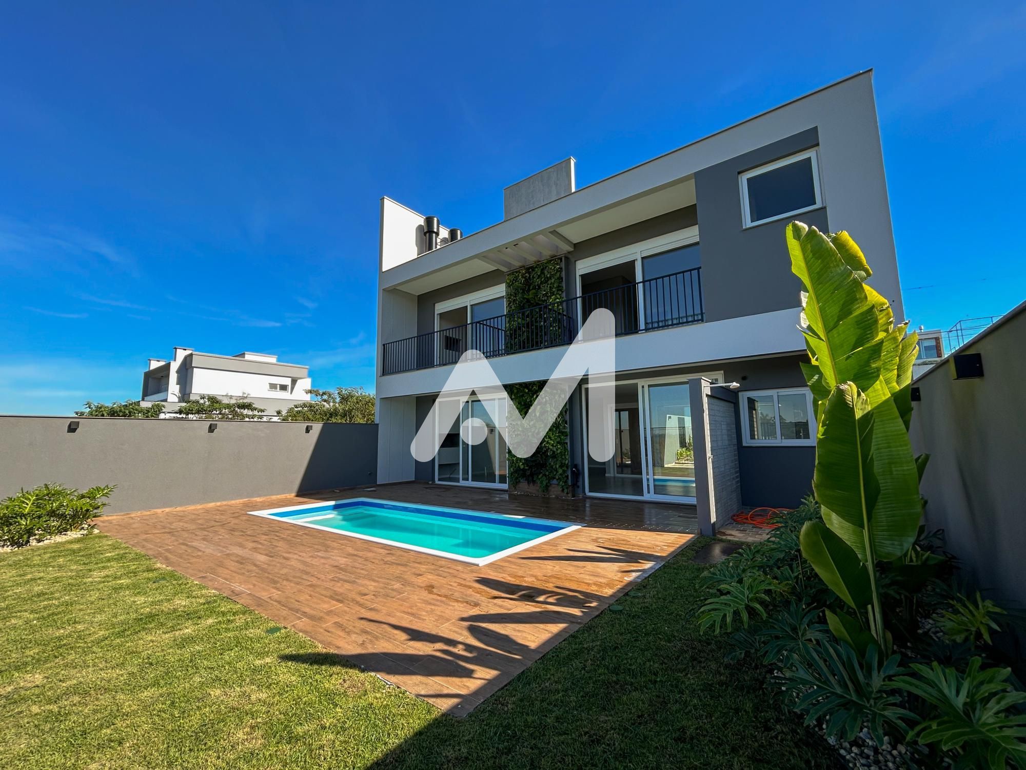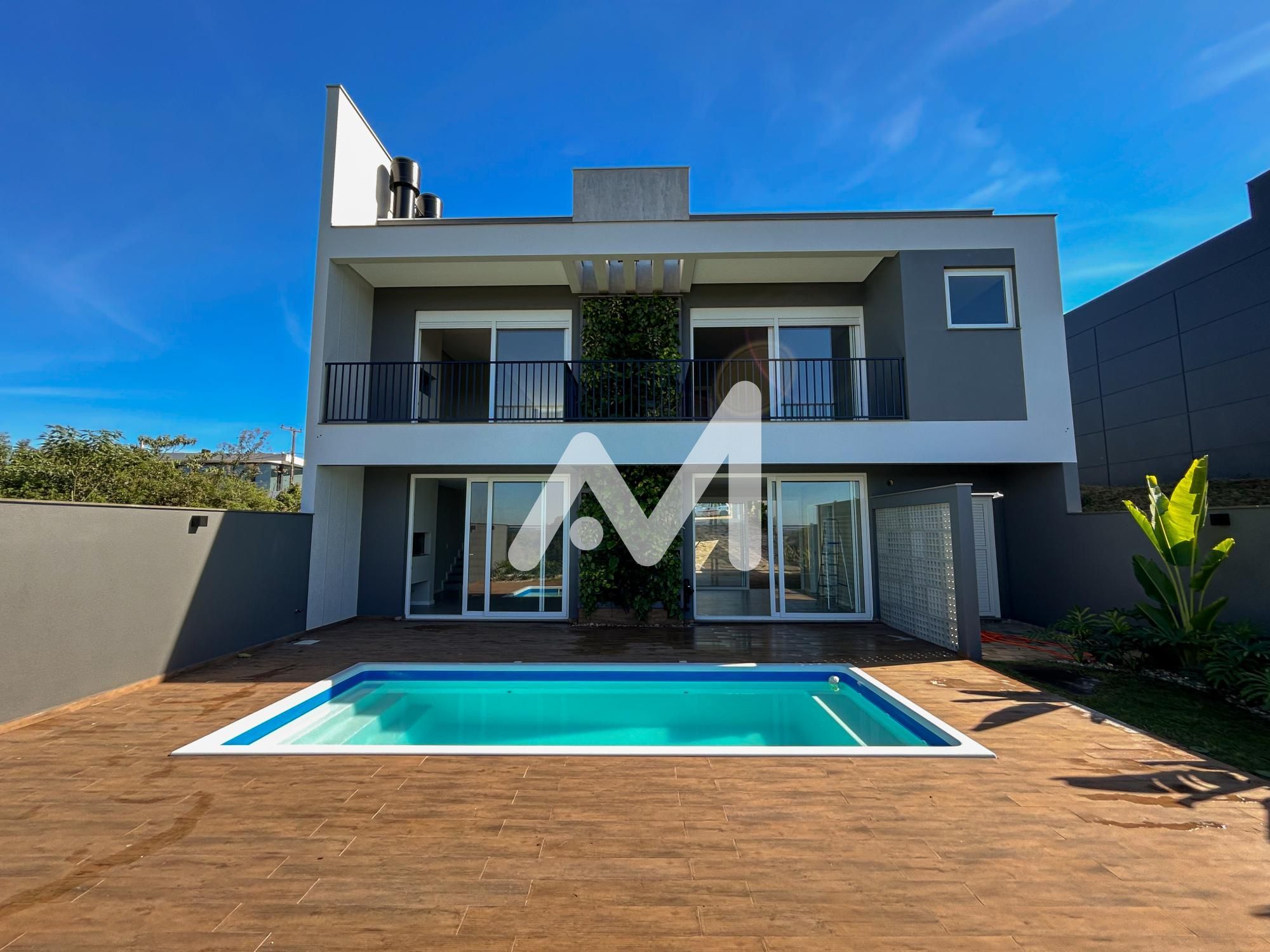 Excelente casa com 02 pavimentos no " Pico do 8 ", conta com 03 dormitórios, sendo 01 suíte com sala de estar, jantar, cozinha, churrasqueira, espaço gourmet, lavabo, piscina com espera para aquecimento, garagem coberta para 02 veículos mais 02 vagas, amplo pátio cercado e murado com espera para sistema de segurança, gesso com cortineiros e espera para cortinas motorizadas, gás central, água quente, revestimentos classe " A ", esquadrias externas em PVC alemão, rehau com persianas automatizadas e vidros laminados para conforto térmico e acústico, portas internas laqueadas, calçadas em basalto serrado, paisagismo e jardim vertical com irrigação automatizada, localizada em região nobre com vista privilegiada do nascer do sol.