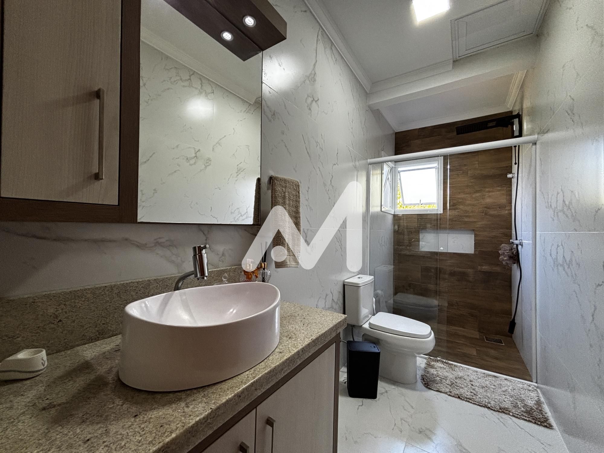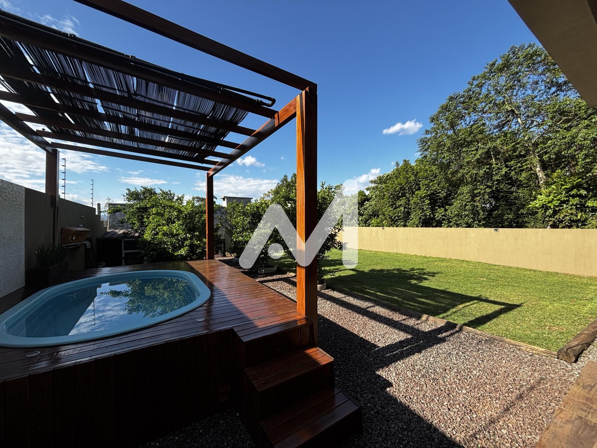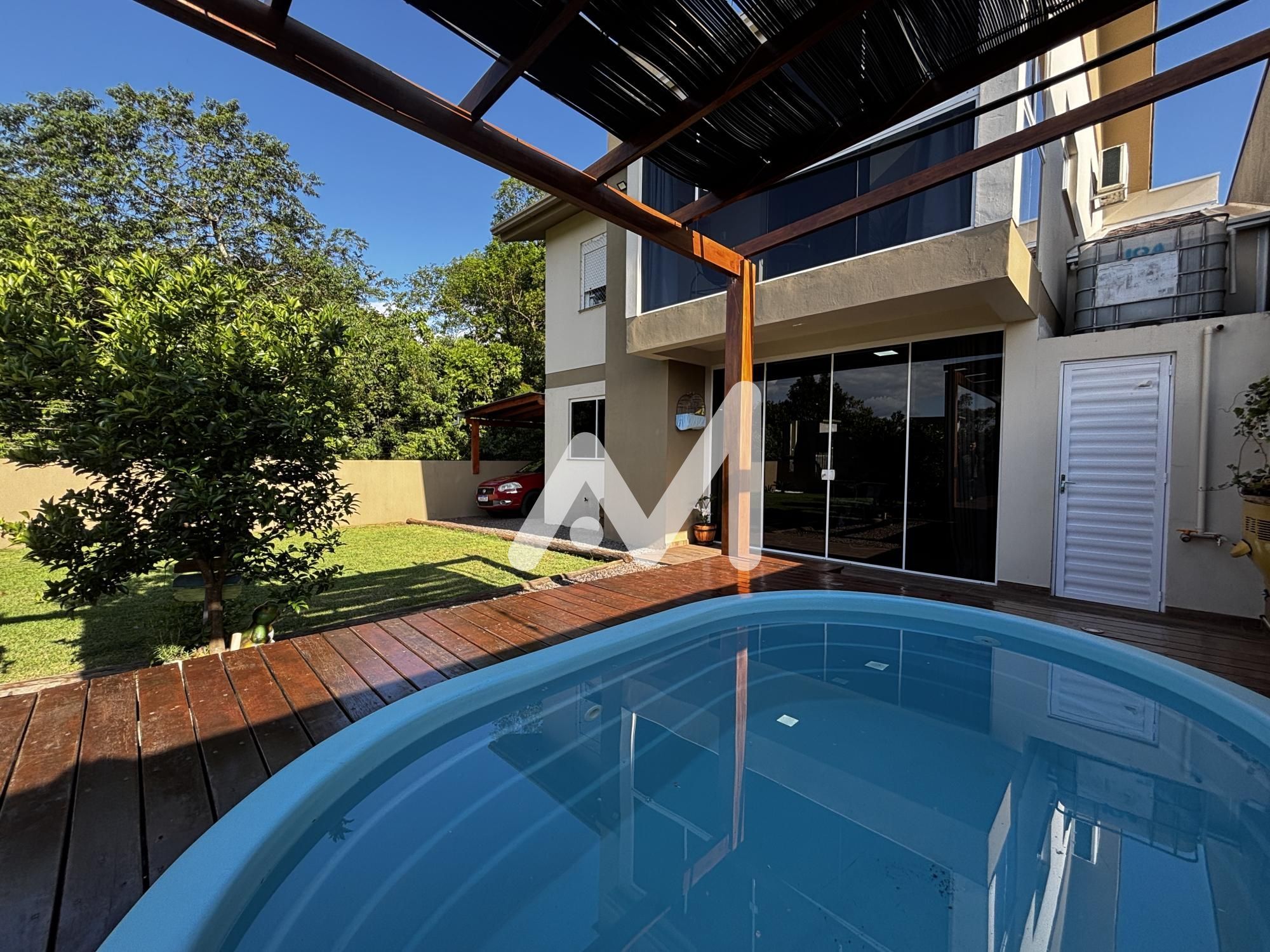 Belíssima casa semimobiliada com móveis planejados, composta por 02 dormitórios, sala de estar/jantar, cozinha, área de serviço, banheiro social, sacada fechada com vidro, amplo pátio com deck e piscina, jardim, espaço gourmet, despensa, lavanderia, lavabo, garagem para 03 carros, cercado e murado.