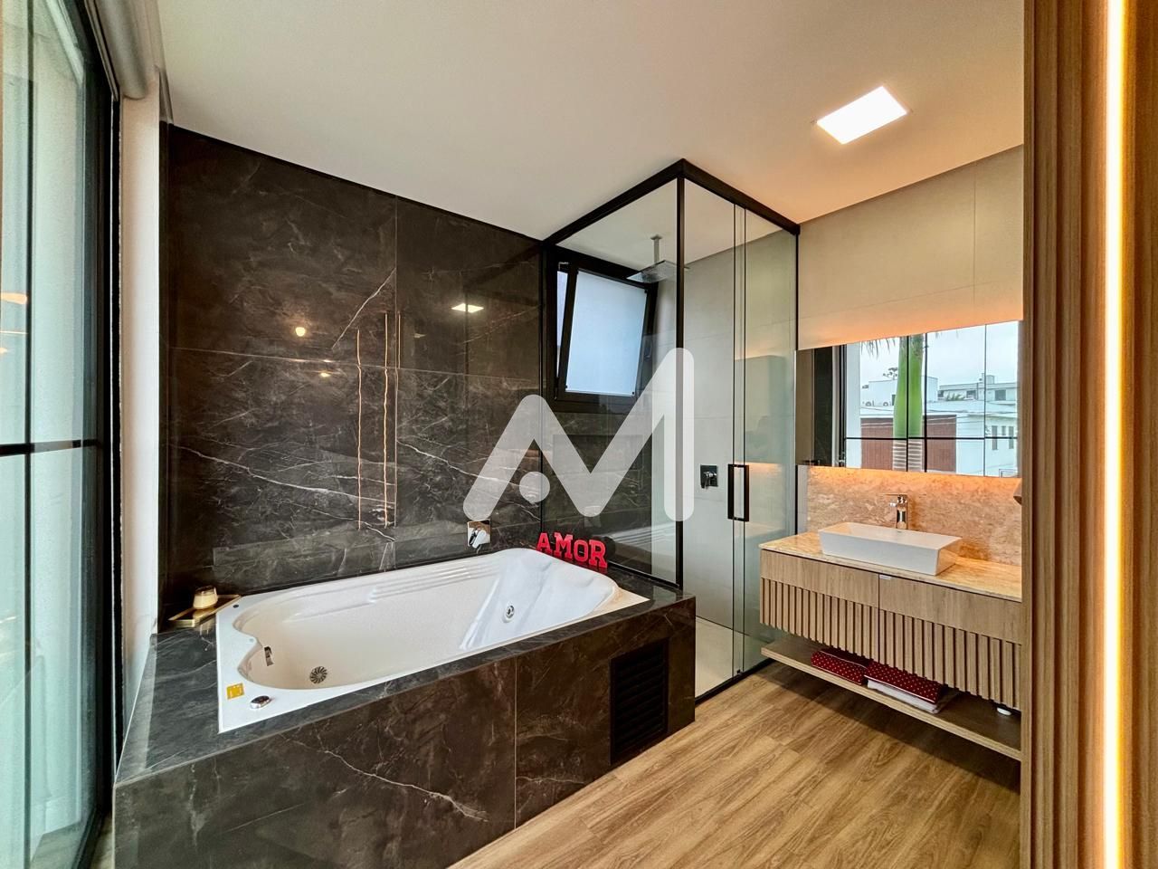 Características do Imóvel: Acesso asfaltado, Ar condicionado, Armário cozinha, Armário embutido, Banheira hidromassagem, Banheiro auxiliar, Banheiro social, Churrasqueira, Closet, Coleta seletiva de lixo, Cozinha, Cozinha gourmet, Cozinha grande, Despensa, Entrada lateral, Escada, Espaço gourmet, Espera para split, Estar social, Hall de entrada, Interfone, Janela grande, Jardim, Lareira, Lavanderia, Luminárias, Móveis planejados, Pet friendly, Piscina, Pátio, Pé direito elevado, Sacada, Sala de estar, Sala de jantar, Varanda, Área de serviço
