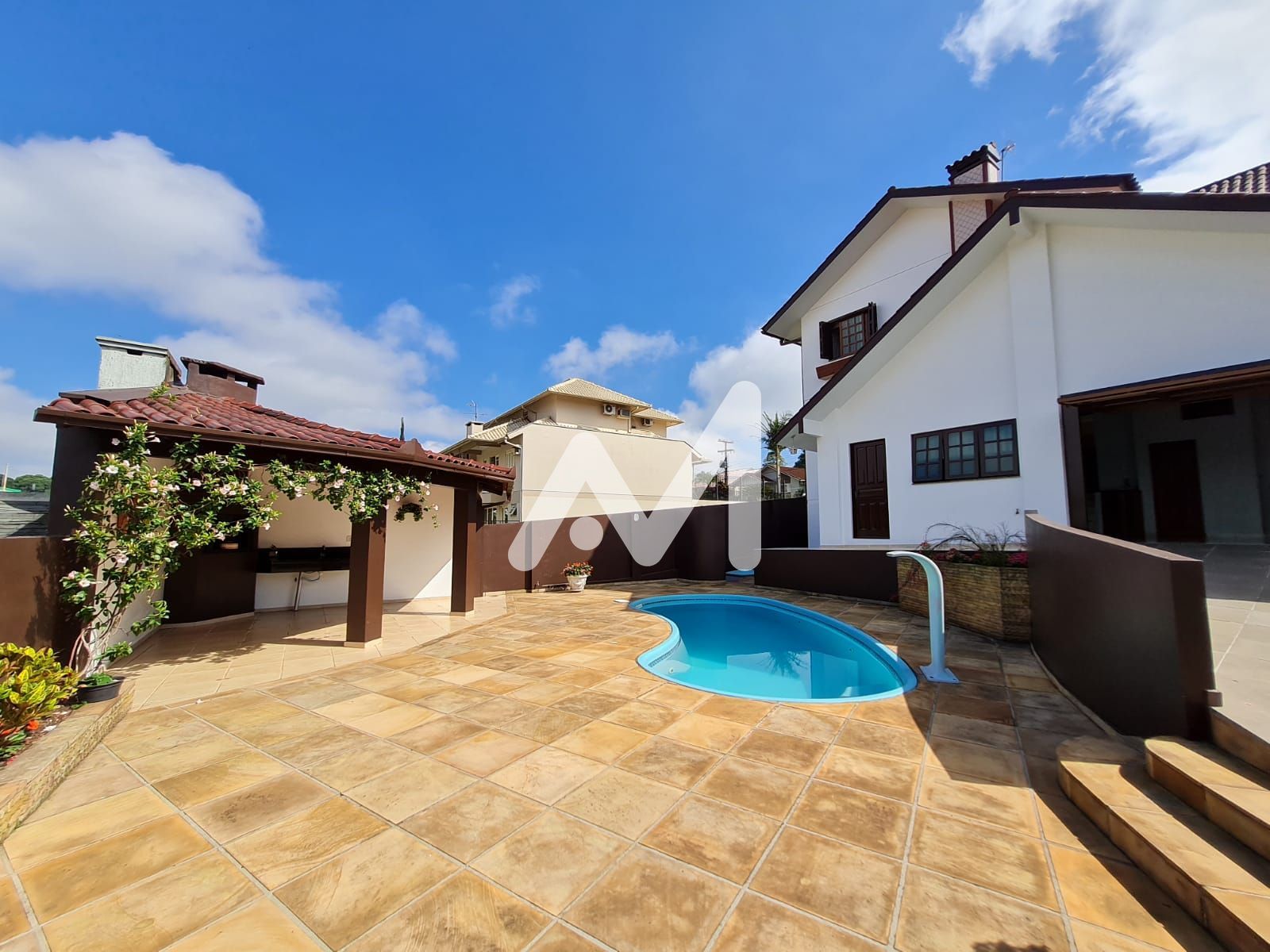 Características do Imóvel: Banheiro social, Churrasqueira, Cozinha, Lareira, Lavabo, Muro, Móveis planejados, Piscina, Portão eletrônico, Pátio, Sacada, Sala de estar, Sala de jantar, Varanda, Área de serviço
