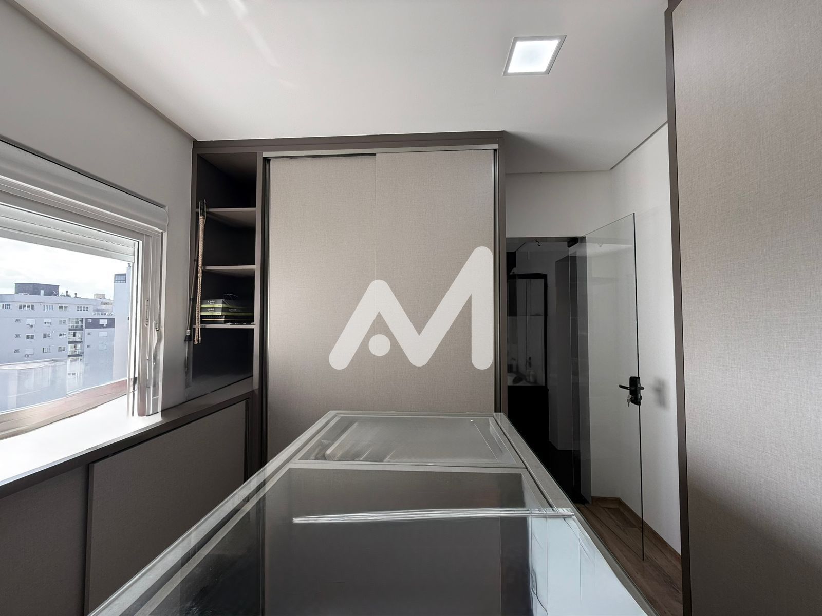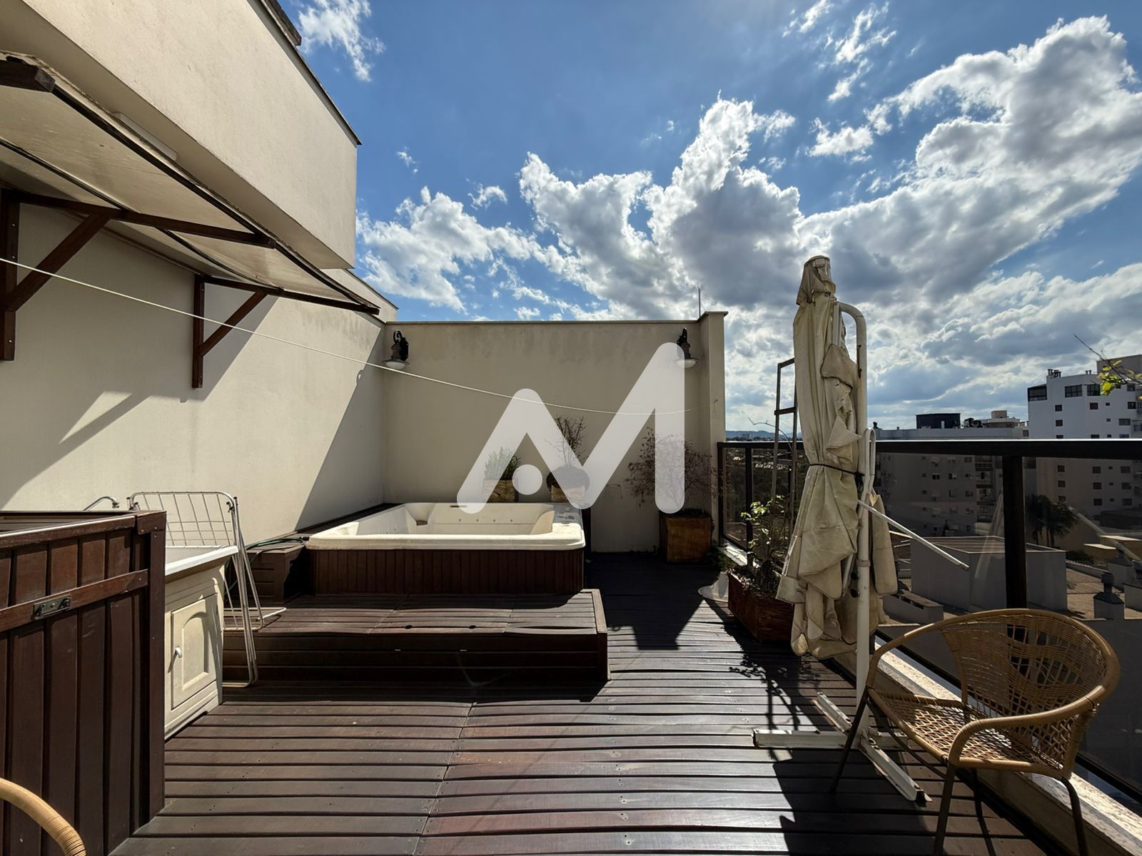 Linda cobertura duplex mobiliada no Centro da cidade! Possui 02 suítes sendo uma suíte master com closet e hidromassagem, sala de estar e jantar com cozinha integrada, copa, churrasqueira, ampla sacada, 01 banheiro social, 01 lavabo, área de serviço, deck com spa para 07 pessoas, todos ambientes climatizados, móveis sob medida e 02 box de estacionamento.