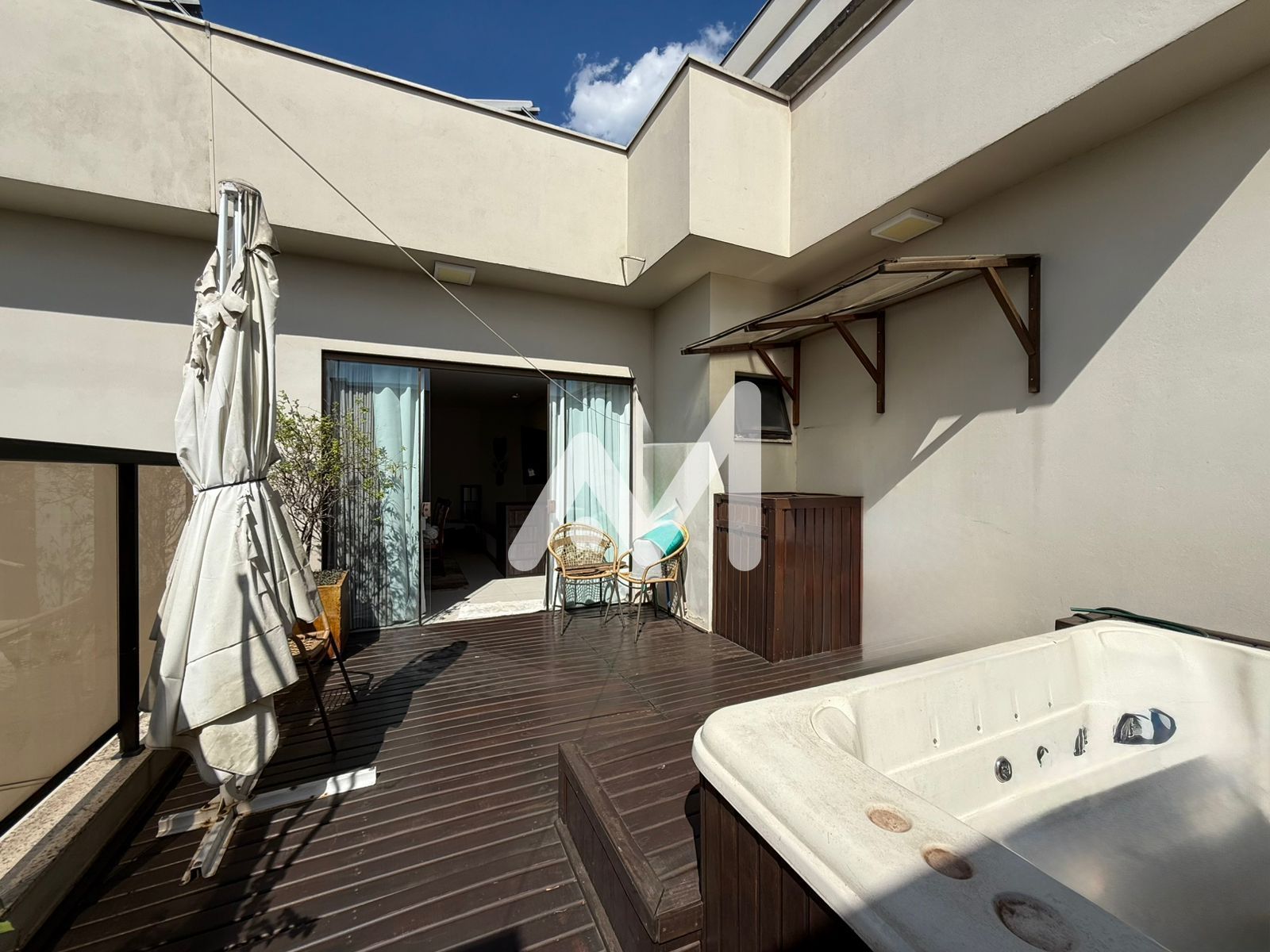 Características do Imóvel: Aquecimento a gás, Ar condicionado, Armário cozinha, Armário embutido, Banheira hidromassagem, Banheiro auxiliar, Banheiro social, Churrasqueira, Closet, Coleta seletiva de lixo, Copa, Cozinha, Cozinha gourmet, Deck, Elevador, Espera para split, Estar social, Fogão, Geladeira, Hidrômetro individual, Interfone, Lavabo, Luminárias, Microondas, Móveis planejados, Sacada, Sala de estar, Sala de jantar, Terraço, Varanda, Vista panorâmica, Área de serviço