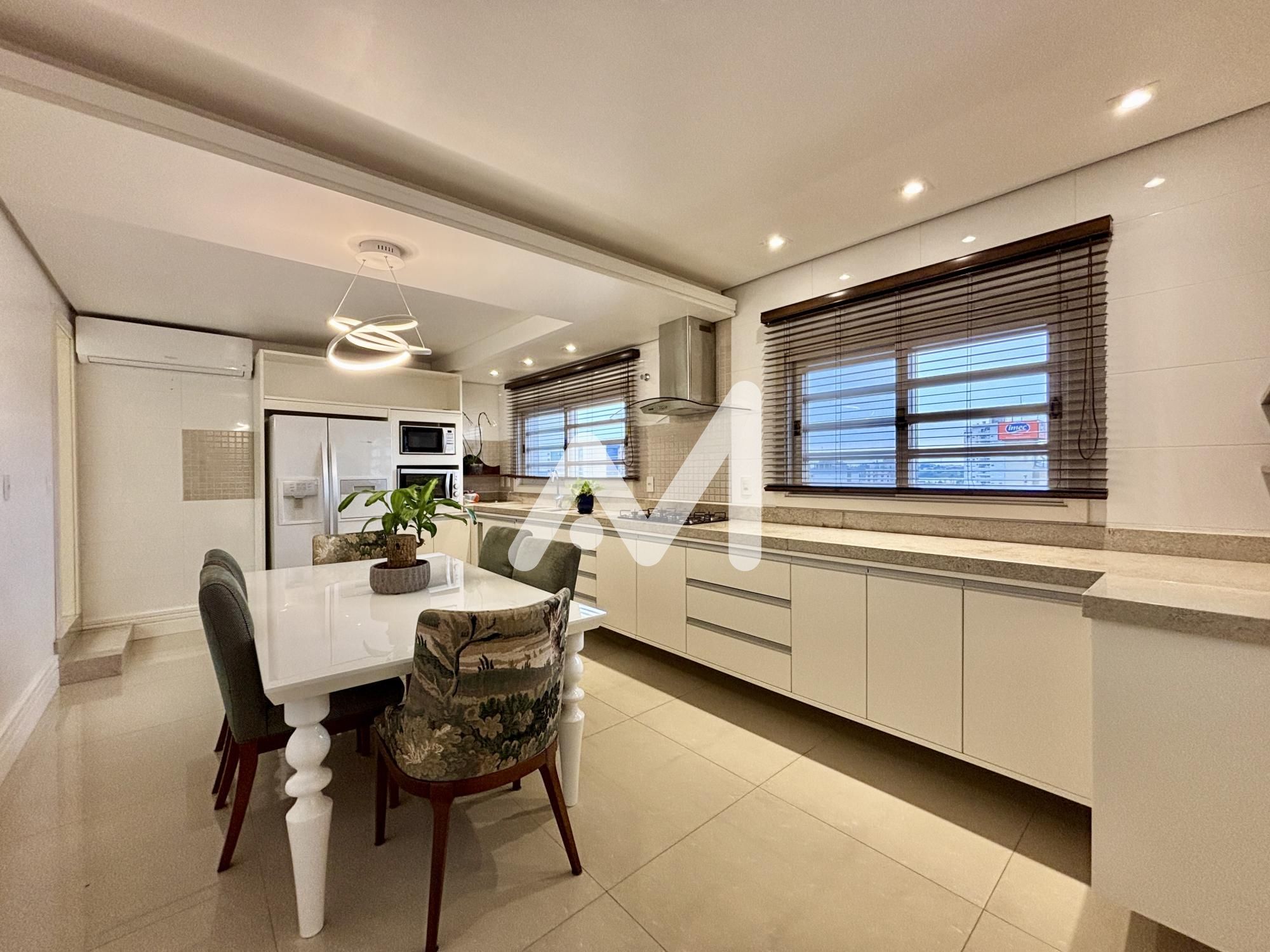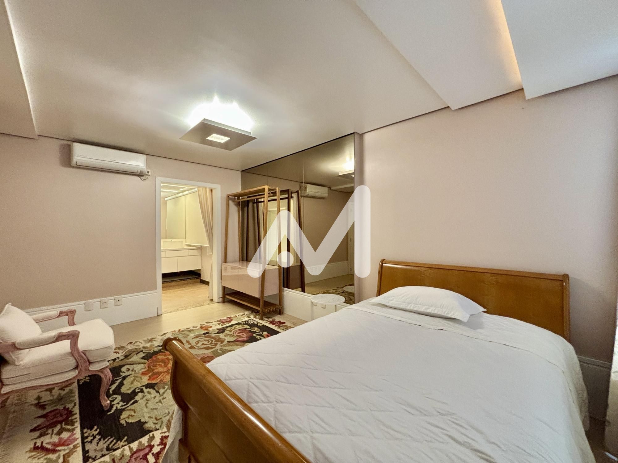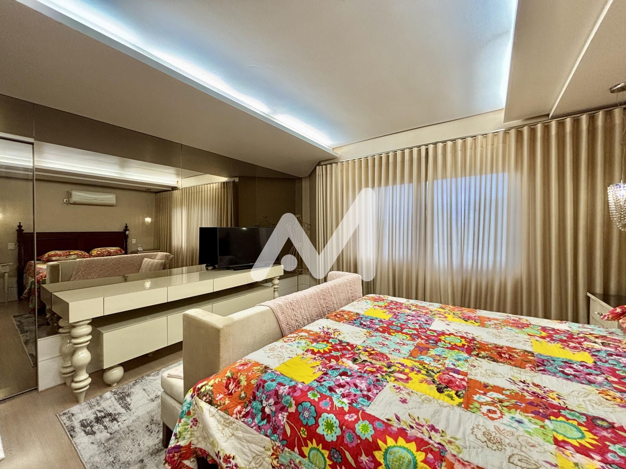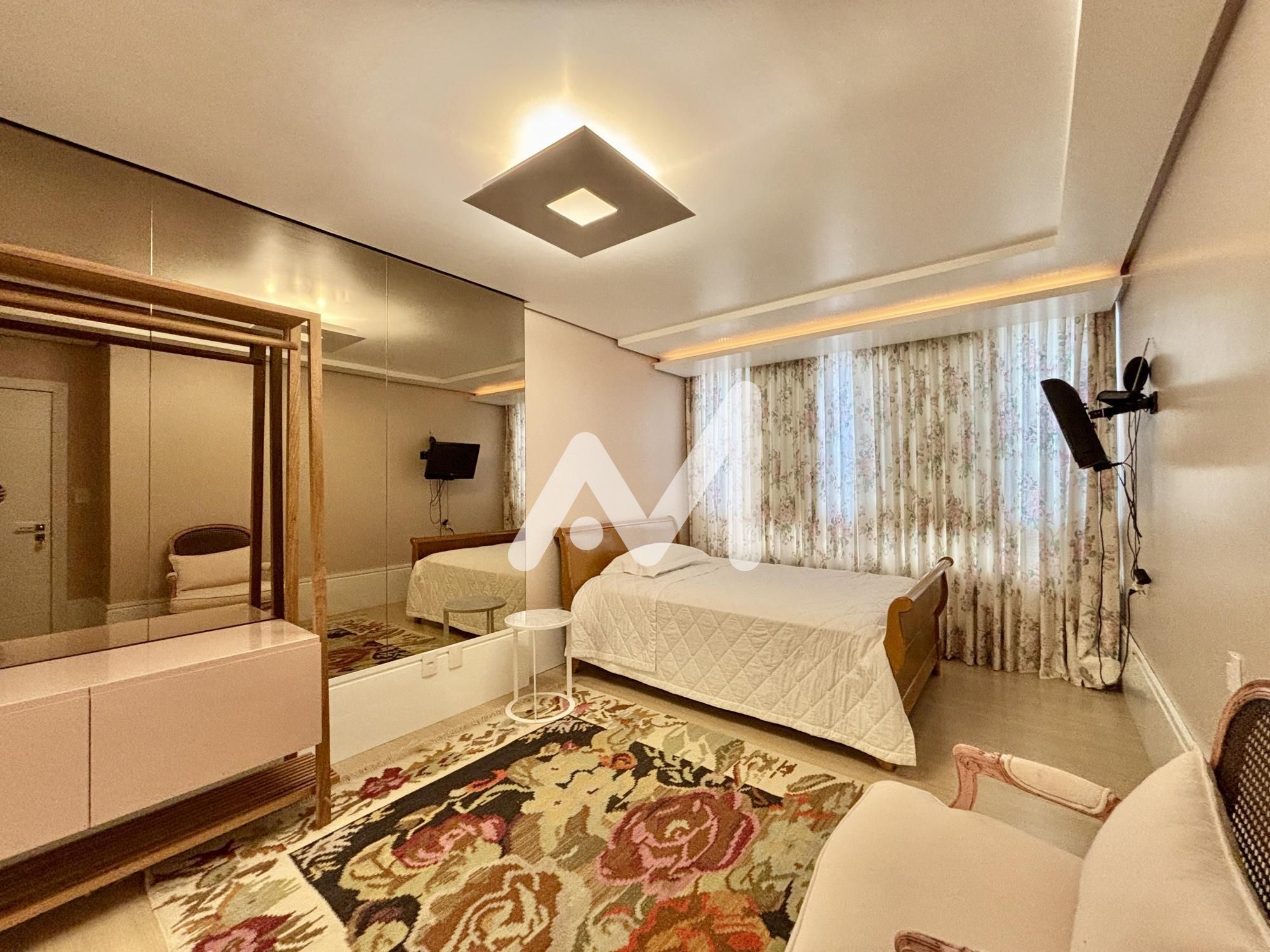 Elegante cobertura duplex semimobiliada, composta por 04 dormitórios, sendo 01 suíte master com closet e banheira de hidromassagem, 03 suítes, lareira e sacada, amplo banheiro social, sala de jogos, sala de TV, sala de jantar, sala de estar com lareira e sacada, lavabo, cozinha com móveis sob medida, ampla área de serviço, dependência de empregada, banheiro de serviço, salão de festas com churrasqueira e cozinha sob medida, banheiro social, terraço com piscina, água quente, 04 boxes de estacionamento, video monitoramento, dois elevadores, salão de festas, área de lazer em frente ao prédio.