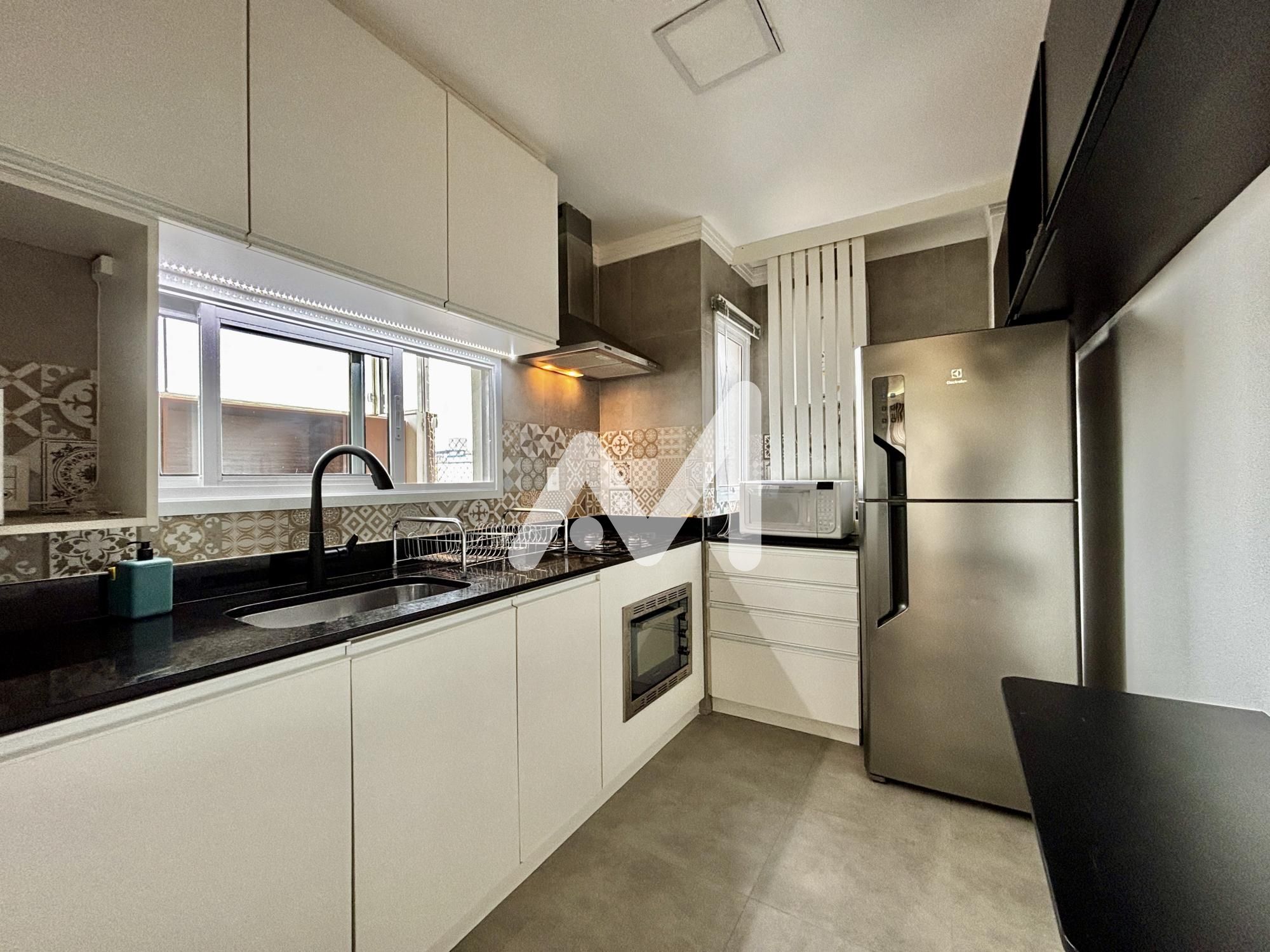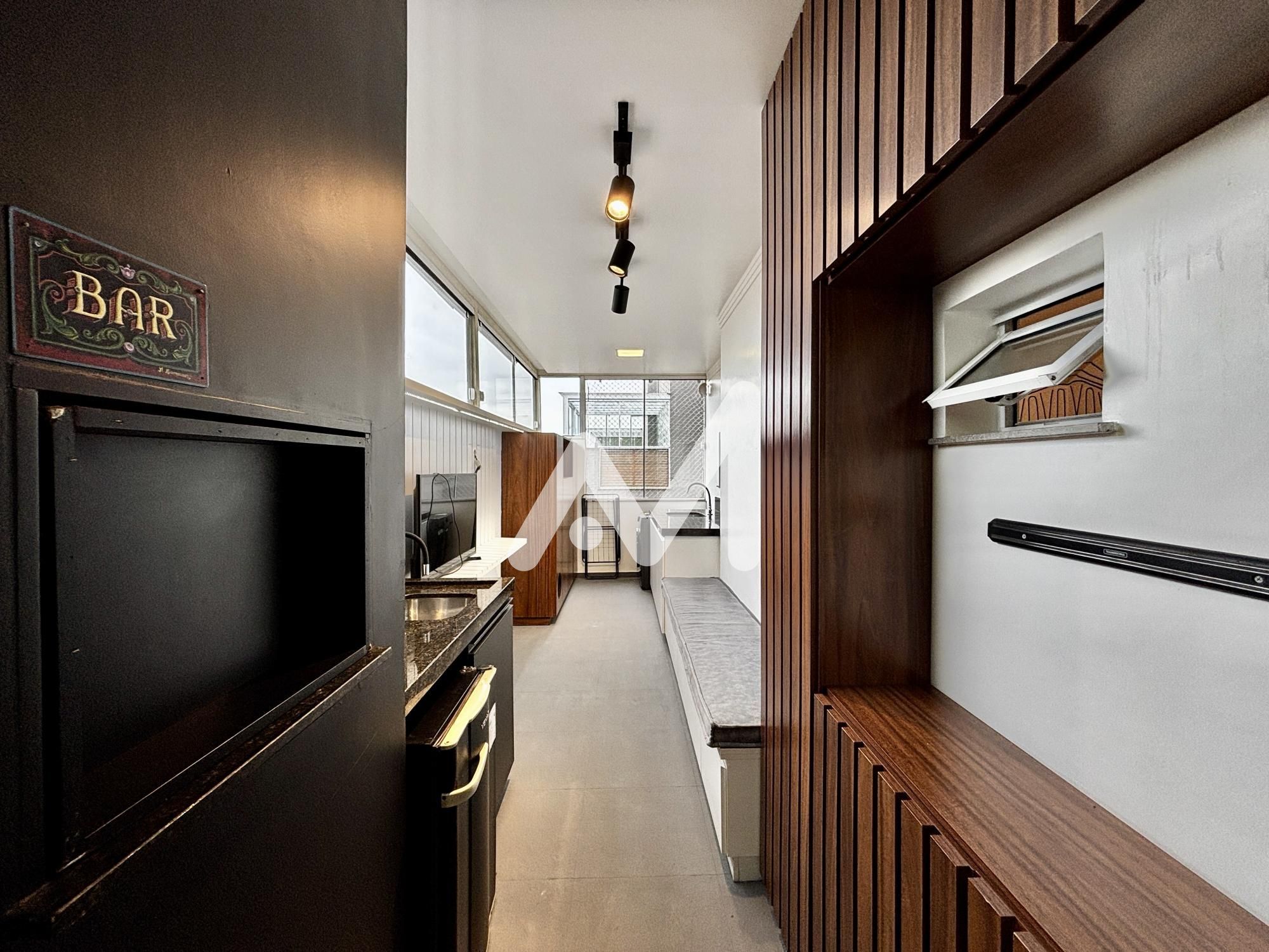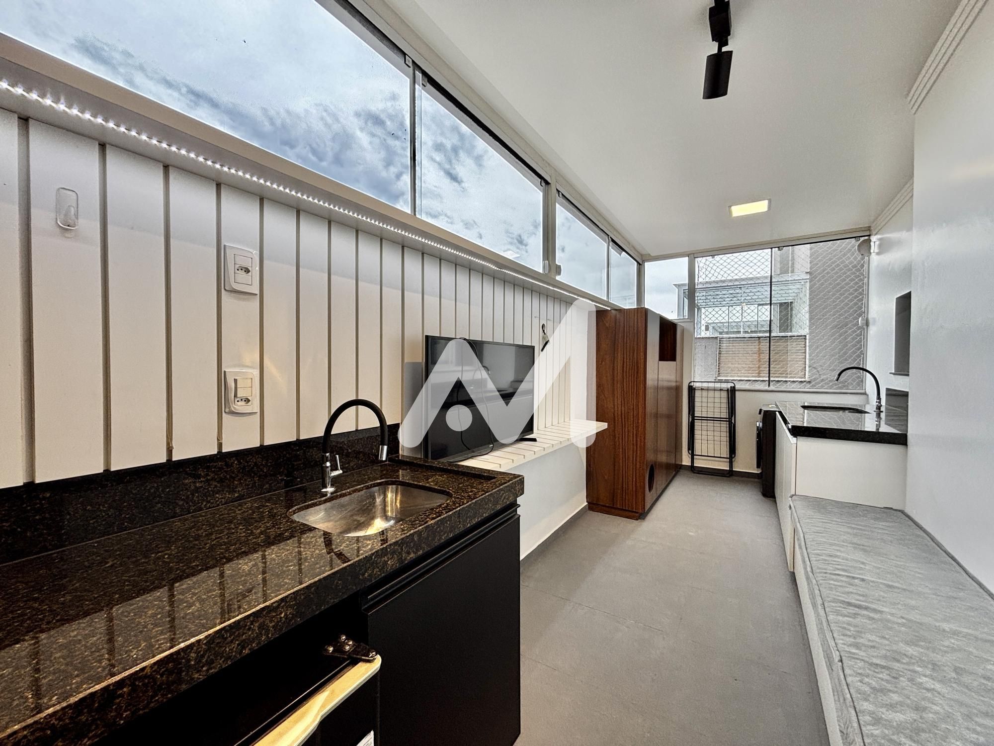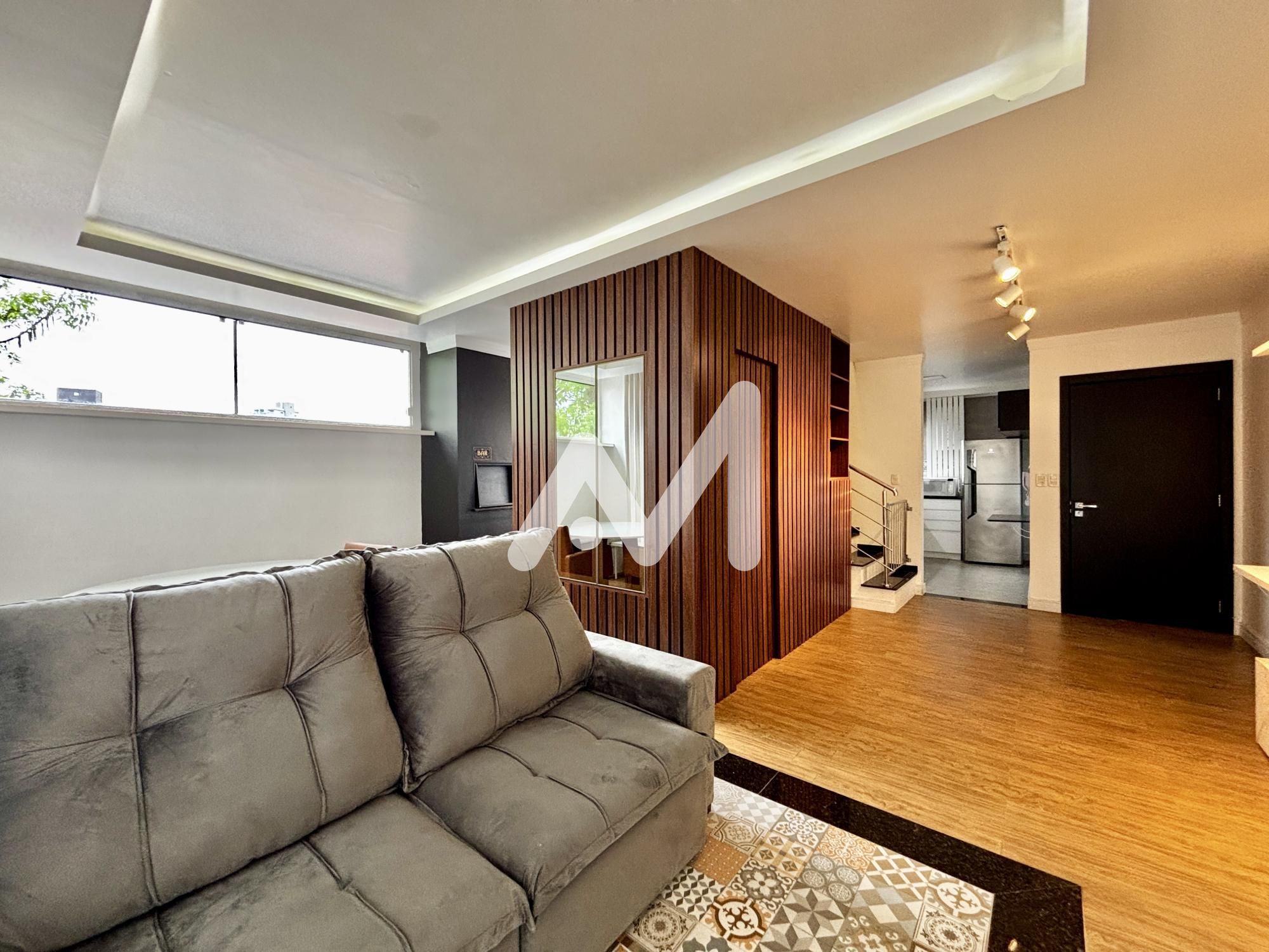 Excelente cobertura duplex mobiliada, 02 suites, de fundos, area de serviço, sala de jantar e estar, cozinha, em porcelanato, terraço, lavabo, com churrasqueira, box de estacionamento, gás central, medidor individual de água e gás, espera para split, massa corrida, rebaixamento em gesso, prédio com elevador, portaria eletrônica, câmera de vigilância, acabamento dos halls comuns em granito.