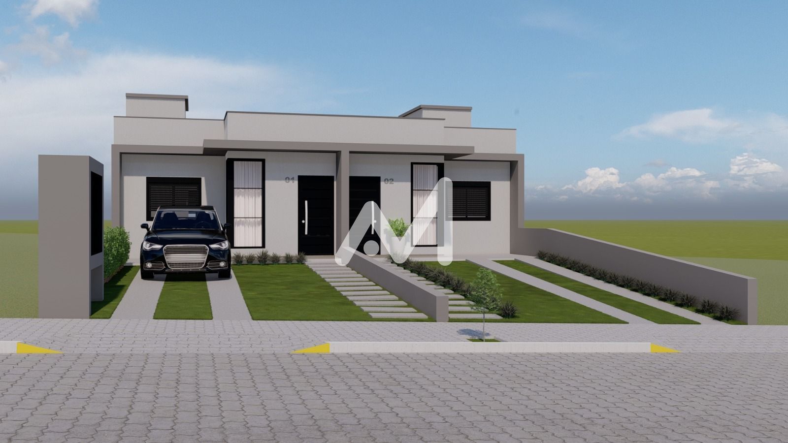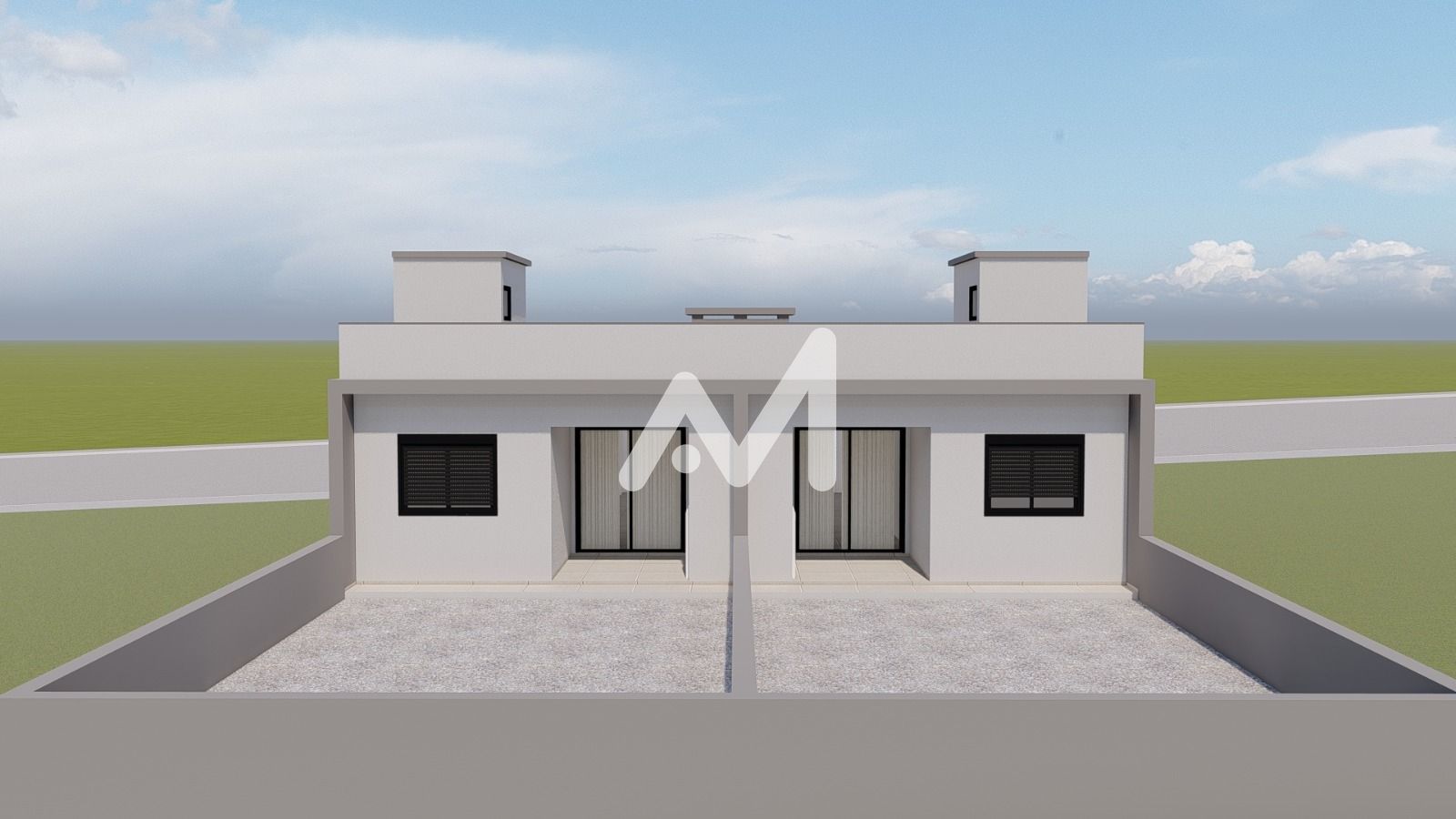 Belíssimo geminado, composto por 02 dormitórios, cozinha, sala de estar/jantar, área de serviço, banheiro social, pátio frente e fundos, garagem para 01 carro.