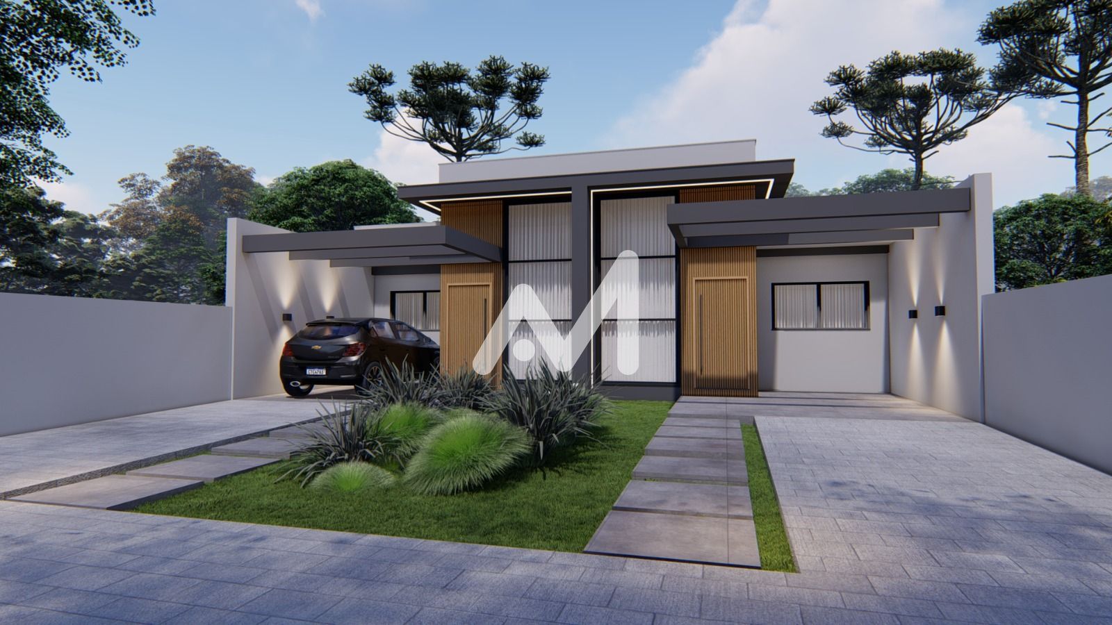 Possui acabamentos modernos, como piso em porcelanato em todos os ambientes, forro em gesso e paredes com massa corrida, garantindo um visual elegante e de fácil manutenção. As aberturas em alumínio preto trazem um toque contemporâneo à fachada, com detalhes em ripado amadeirado que valorizam o design.