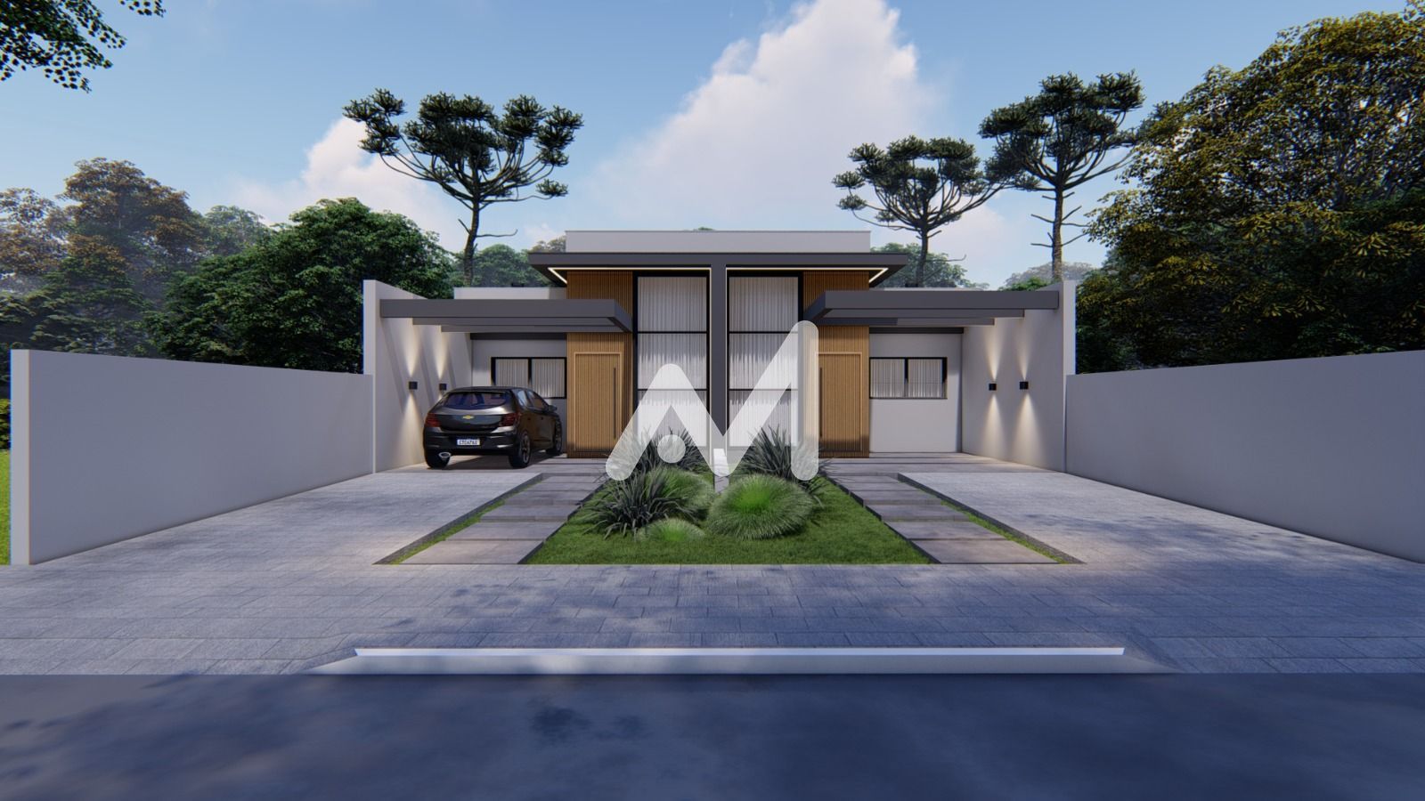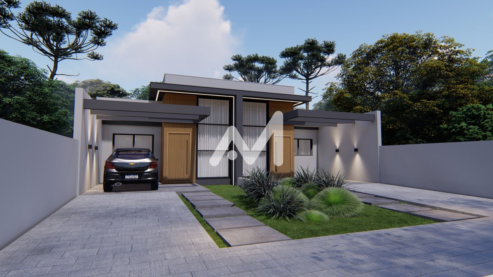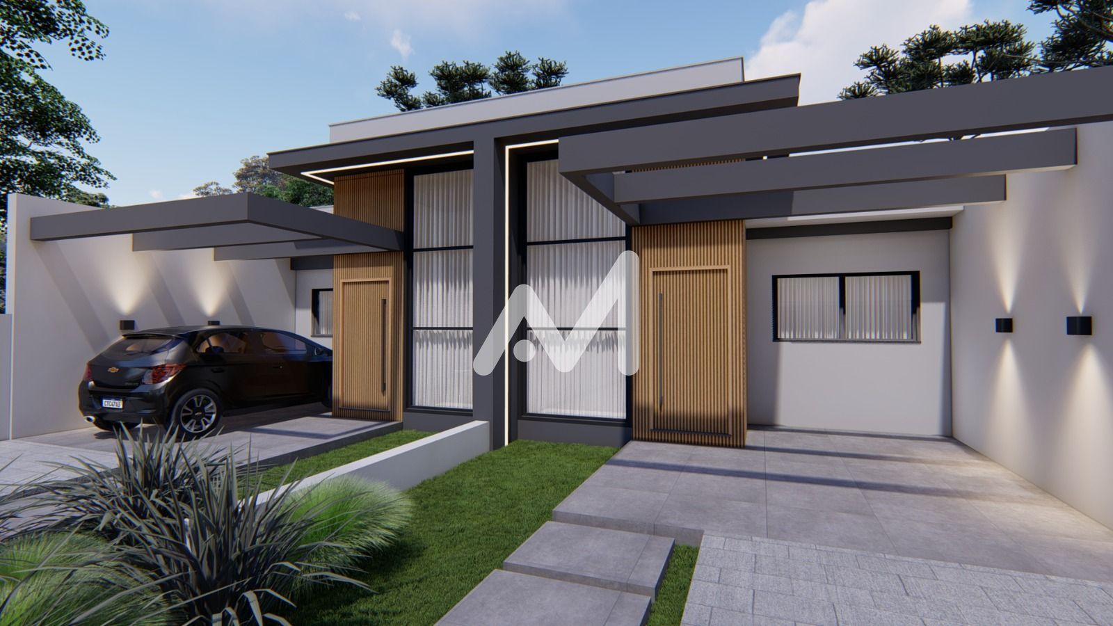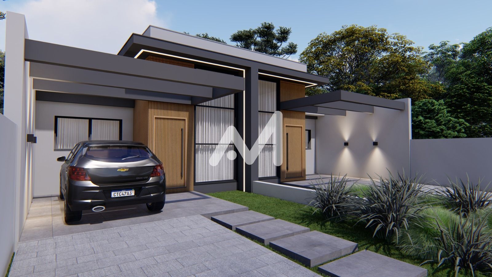 Possui acabamentos modernos, como piso em porcelanato em todos os ambientes, forro em gesso e paredes com massa corrida, garantindo um visual elegante e de fácil manutenção. As aberturas em alumínio preto trazem um toque contemporâneo à fachada, com detalhes em ripado amadeirado que valorizam o design.
