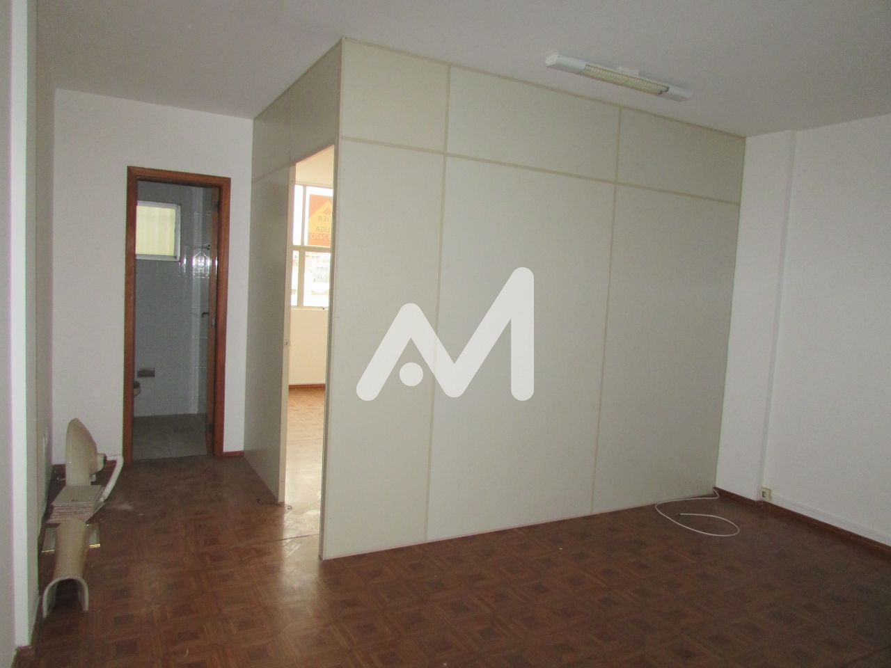 Sala comercial, aprox. 40m², com divisória, 01 banheiro, de frente com vista em prédio comercial no centro.