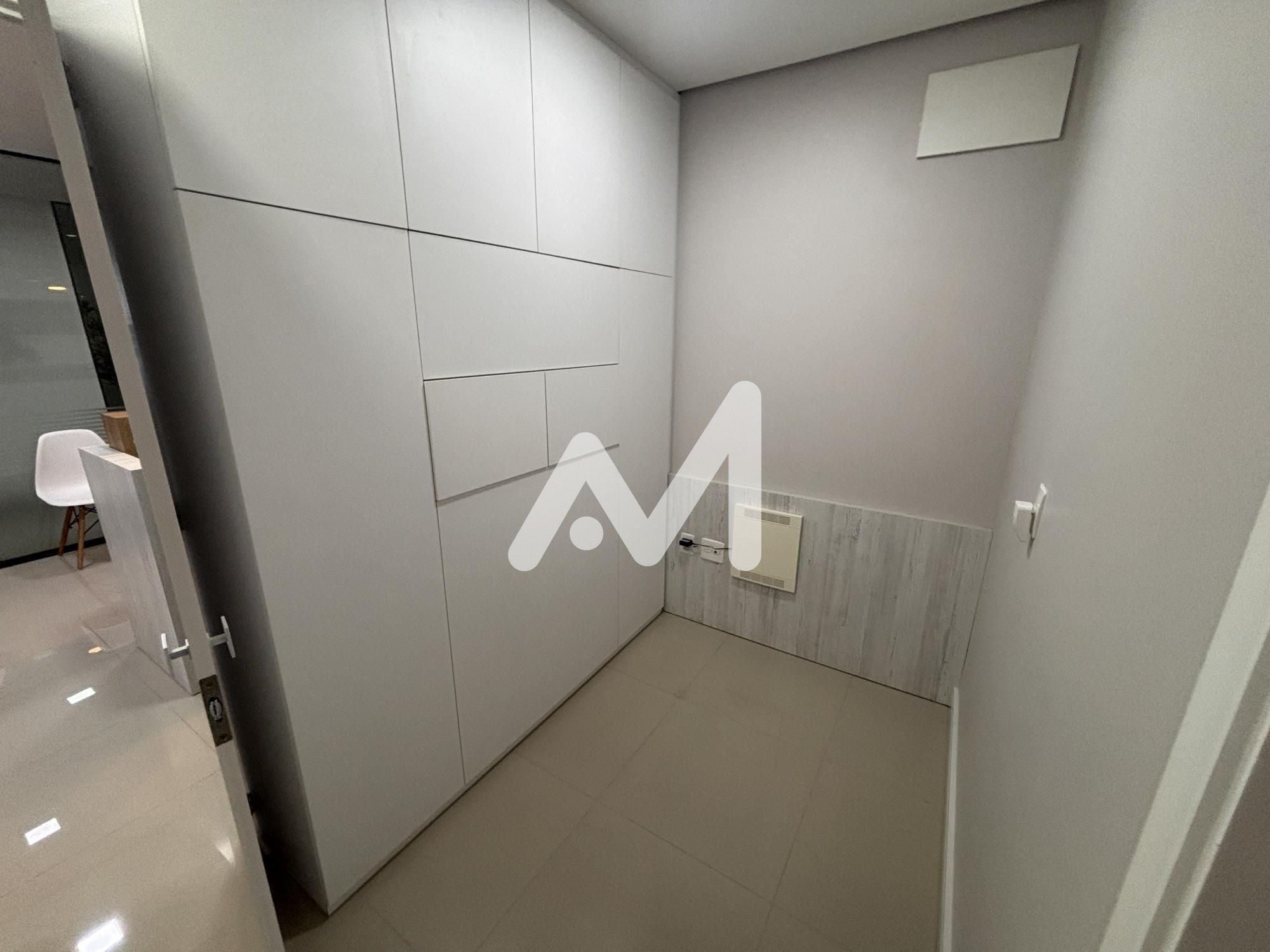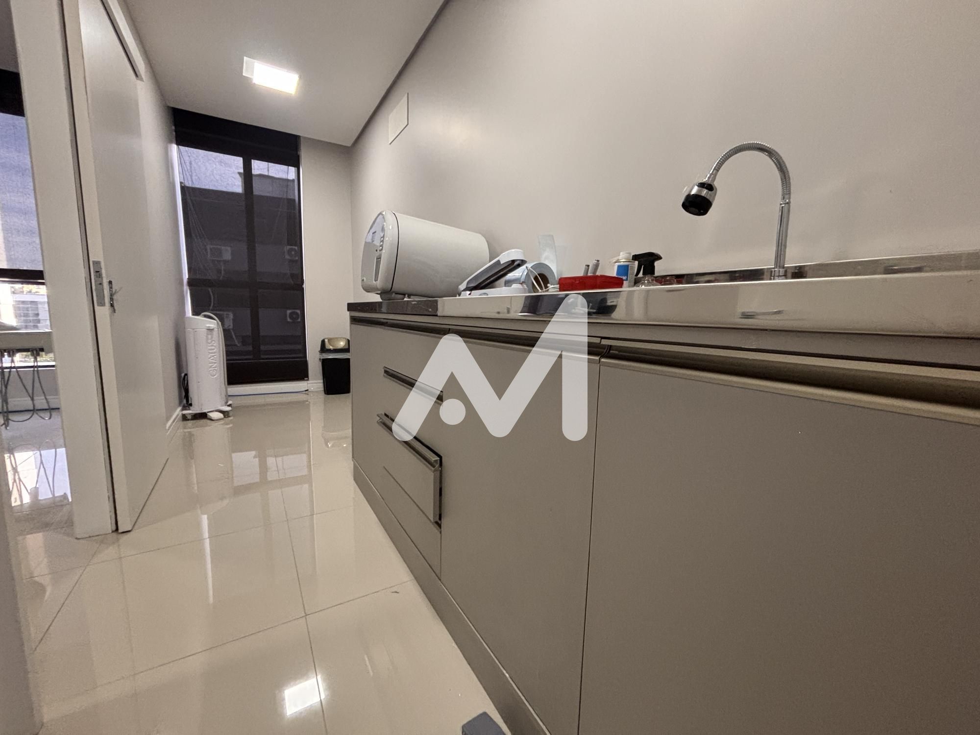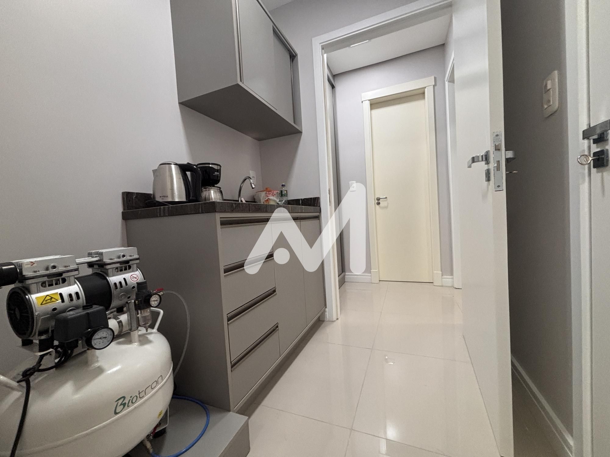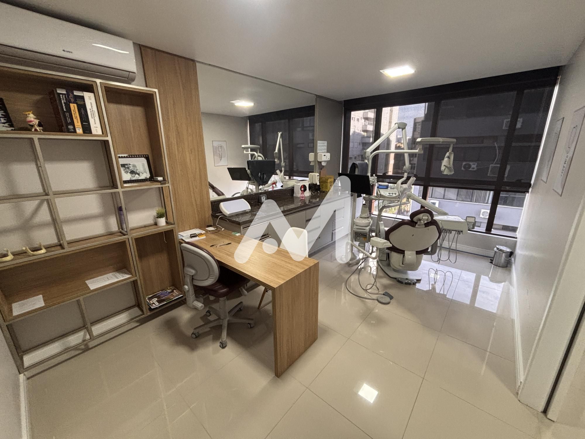 Excelente sala comercial, mobiliada, com móveis sob medida, divisórias, iluminação, ar condicionado na recepção e sala de atendimento.