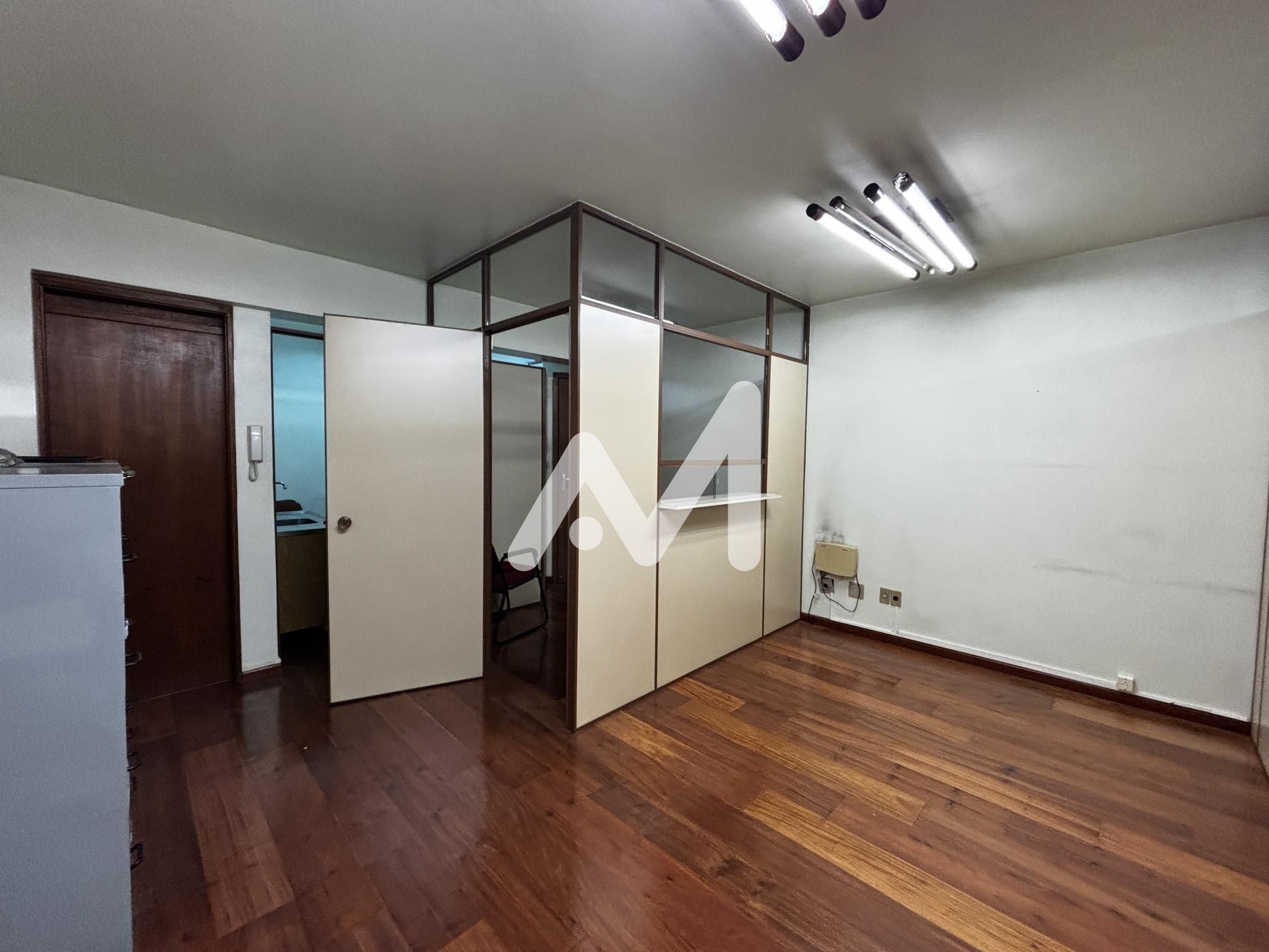 Sala comercial com excelente localização! 4º andar, recepção, banheiro social, 03 salas individuais, com vista de frente e Box de estacionamento.