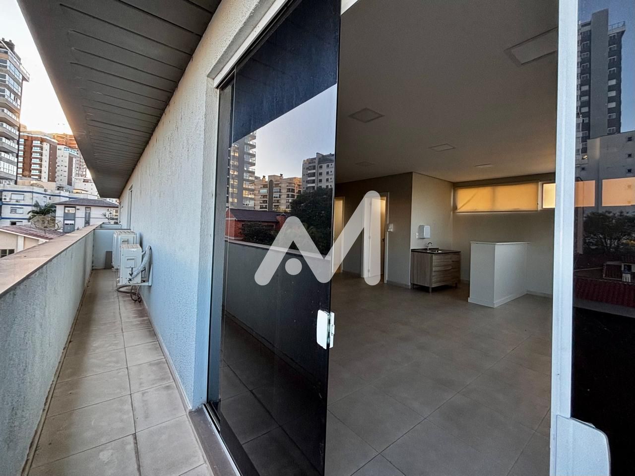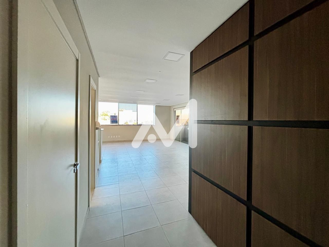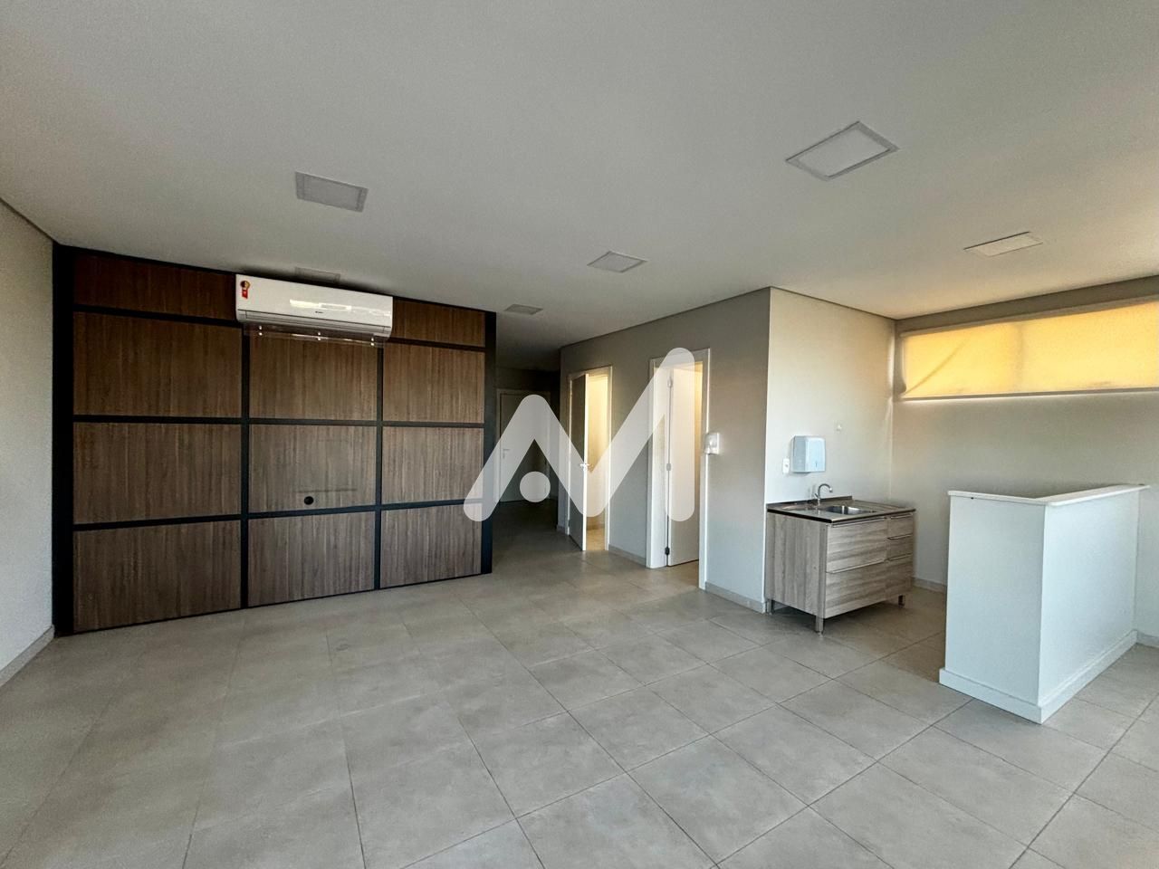 Sala em ótima localização no Centro! Amplo espaço, dividida, 02 splits, cozinha, 02 banheiros sociais, vista de frente, sacada lateral e box de estacionamento coberto.