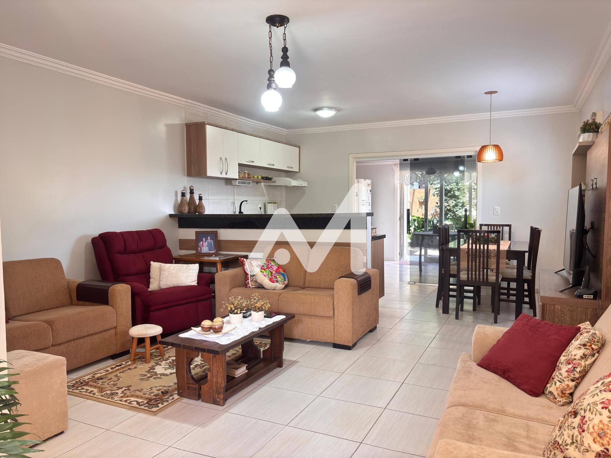 Excelente sobrado, composto por 03 dormitórios, cozinha com móveis, sala de estar/jantar, varanda, churrasqueira, área de serviço, banheiro social, lavabo, garagem para 02 carros, cercado e murado.
