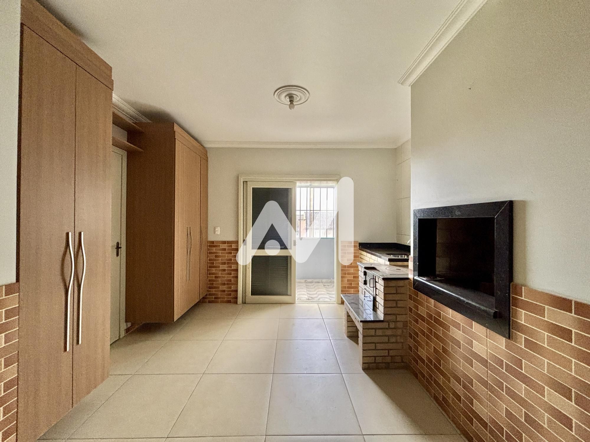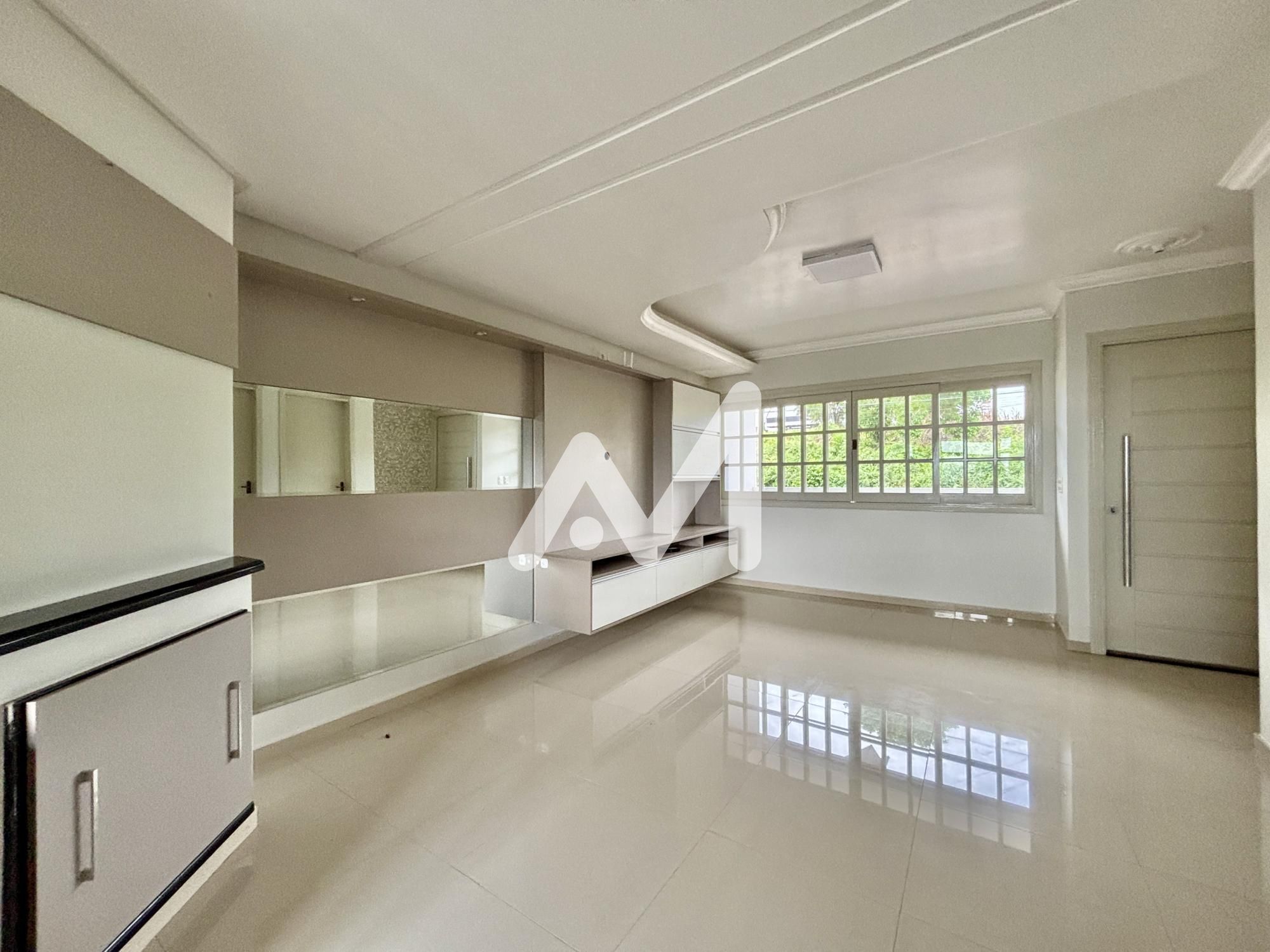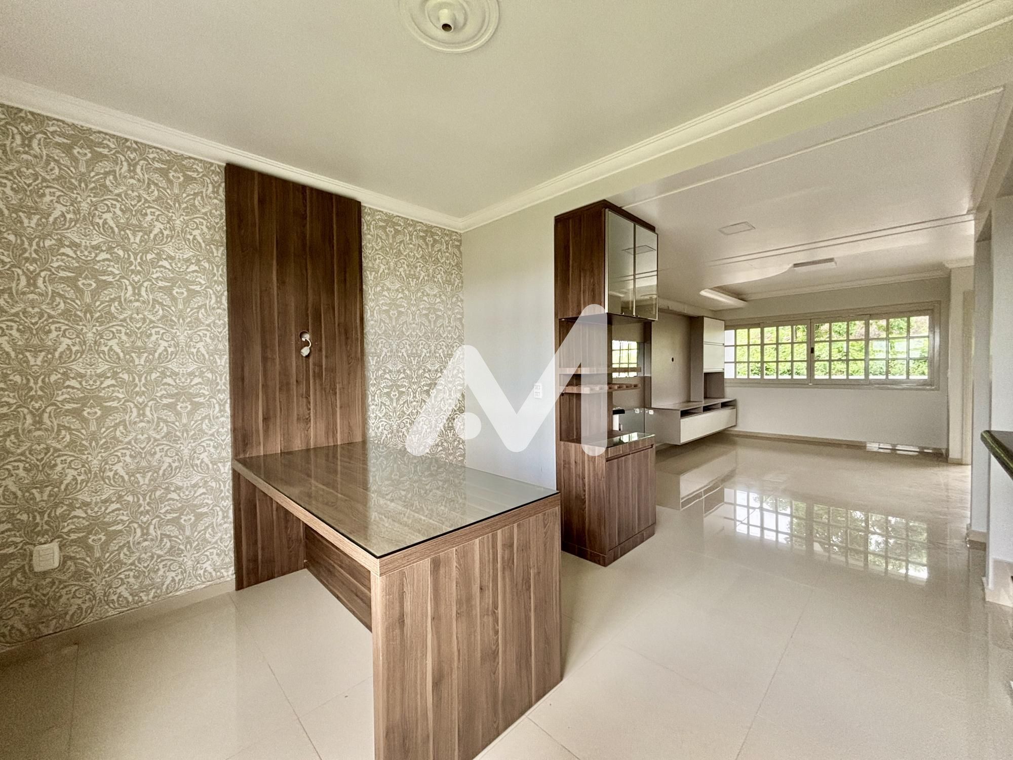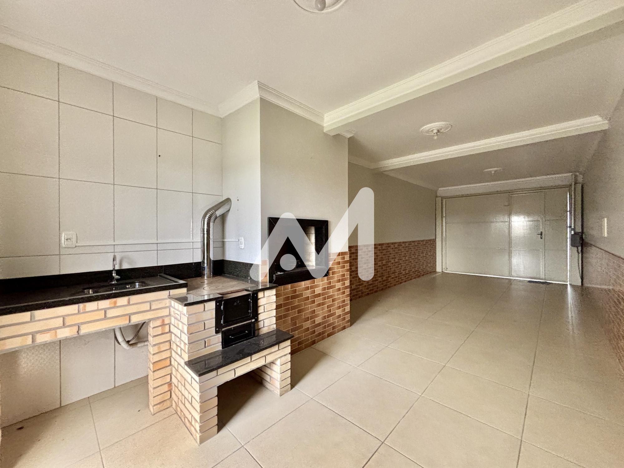 Sobrado semimobiliado com móveis planejados, composto por 03 dormitórios, cozinha, sala de estar/jantar, churrasqueira, fogão campeiro, cozinha auxiliar, varanda fechada com vidro, sacada, lavanderia, lavabo, banheiro social, garagem para 02 carros, cercado e murado.