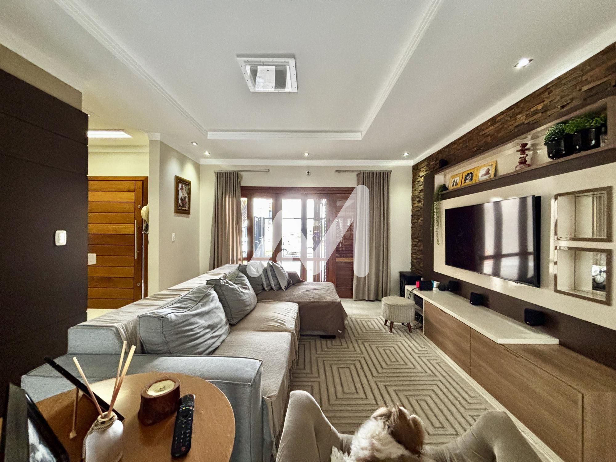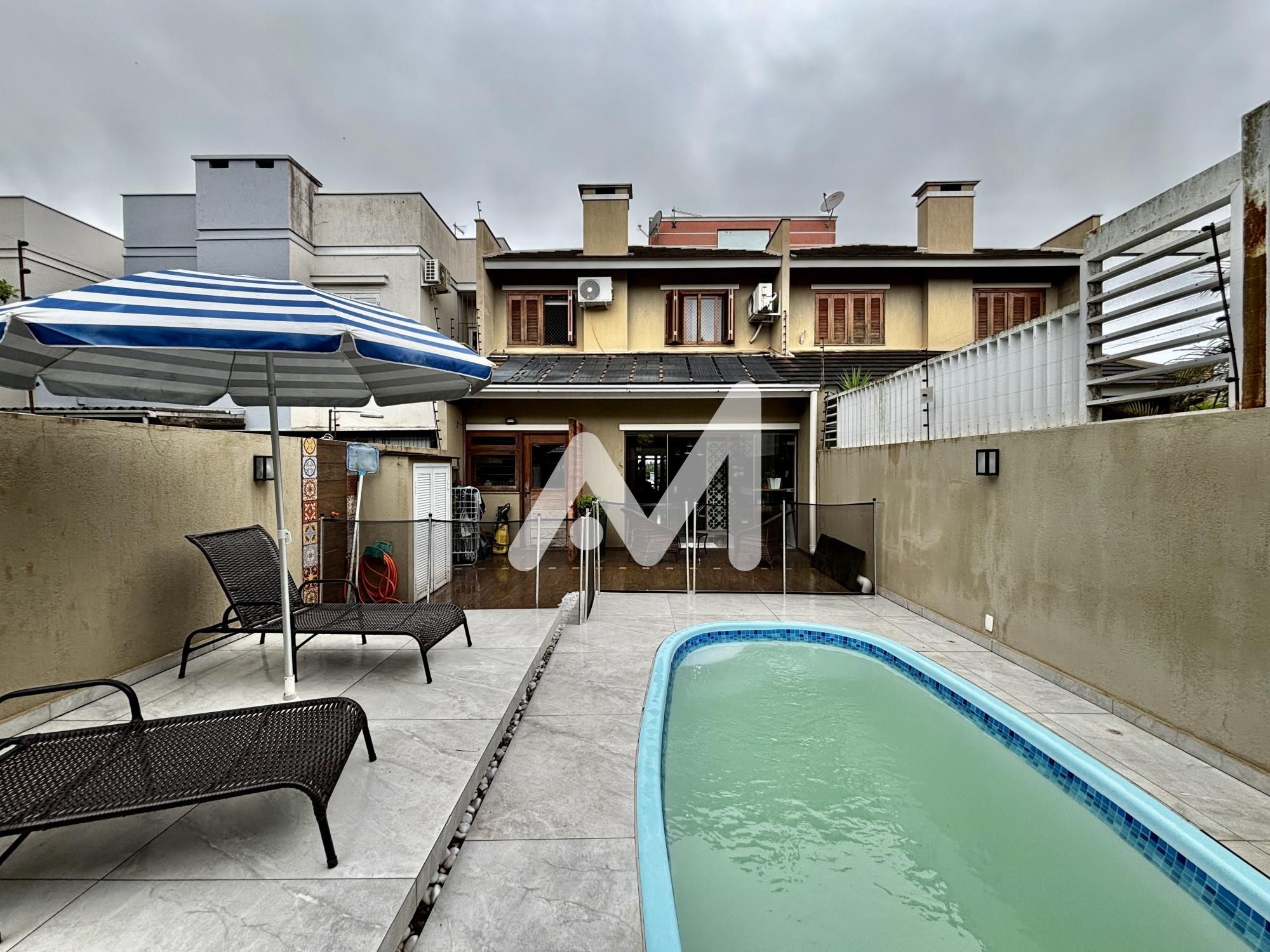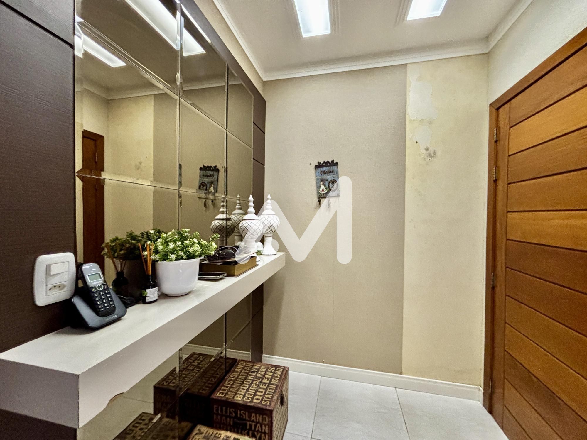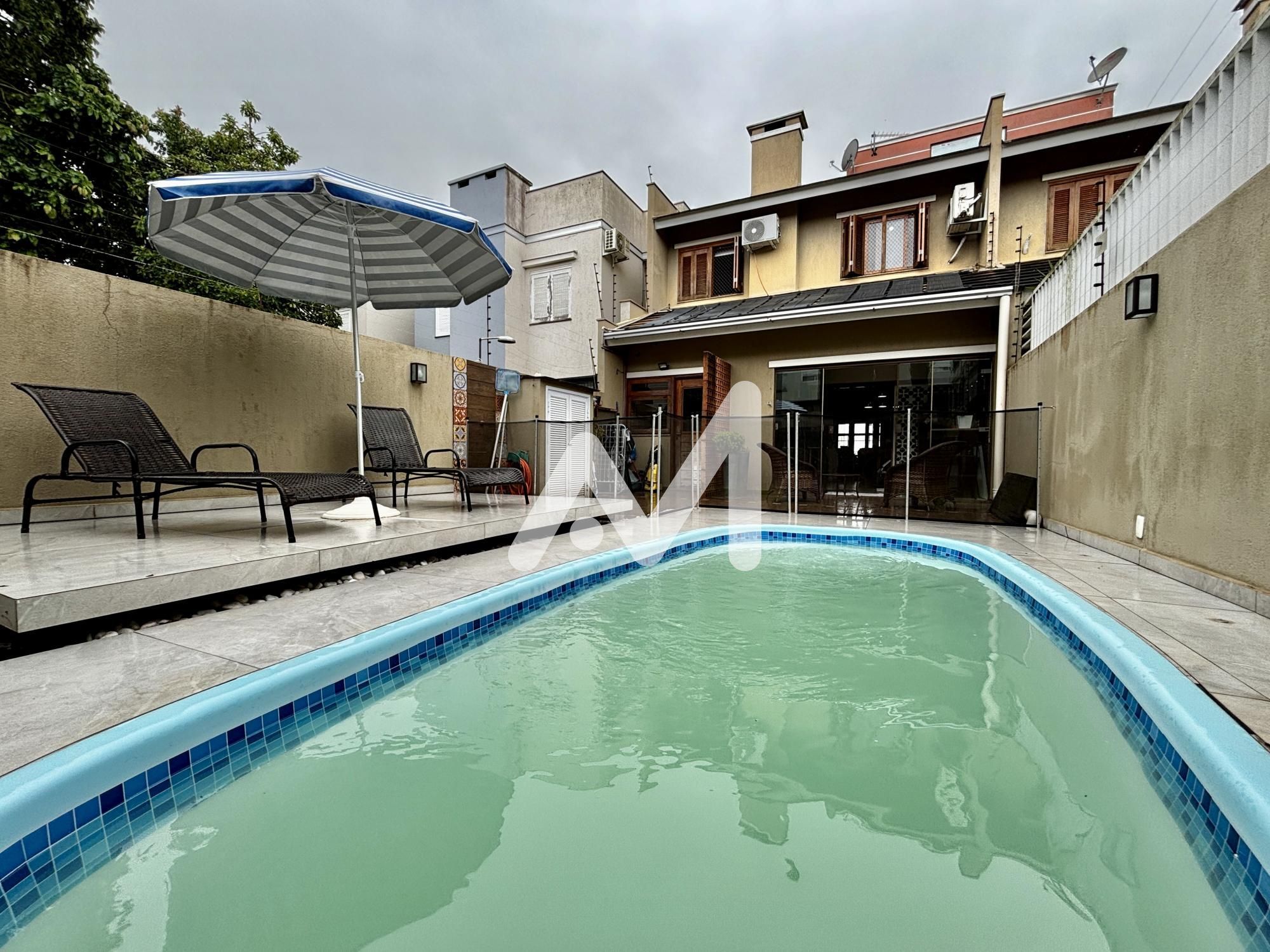 Belíssimo sobrado semimobiliado com móveis planejados, 03 dormitórios, sendo 01 suíte, sacada, cozinha, sala de estar/jantar, espaço gourmet, amplo pátio com piscina, área serviço, lavabo, lareira, acabamento em gesso, churrasqueira, garagem para 02 carro, cercado e murado.