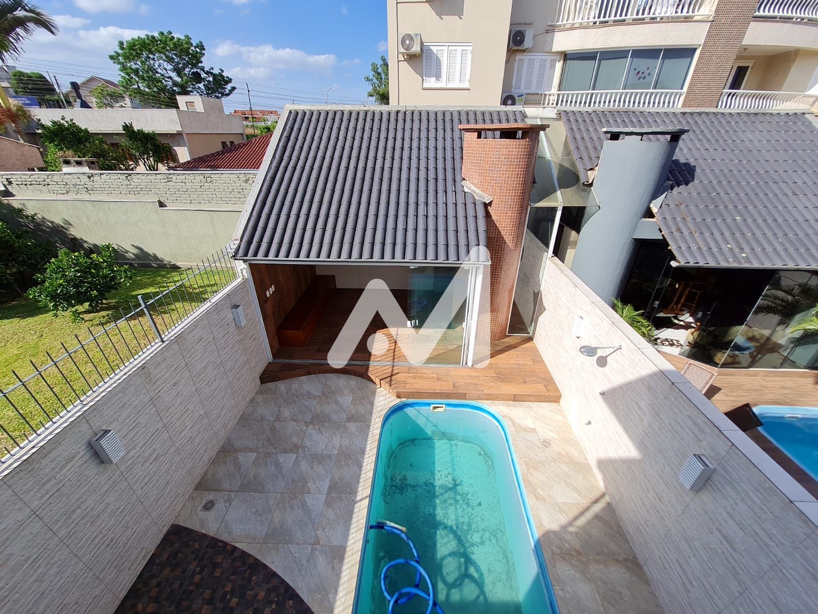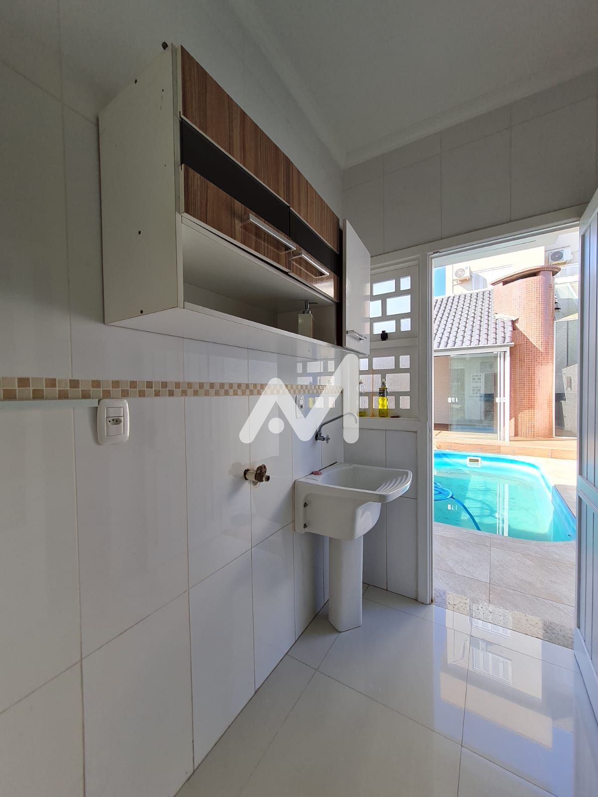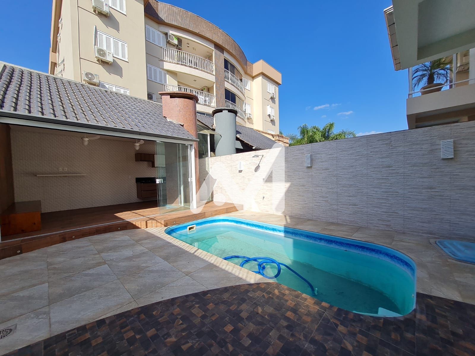 Excelente sobrado semimobiliado, com 03 dormitórios sendo 01 suíte, ampla sala de estar, jantar, cozinha, área de serviço, pátio com piscina, quiosque mobiliado com 02 ventiladores, churrasqueira e vaga para até 02 veículos. Permanecem no imóvel todos os móveis sob medida e Junker.