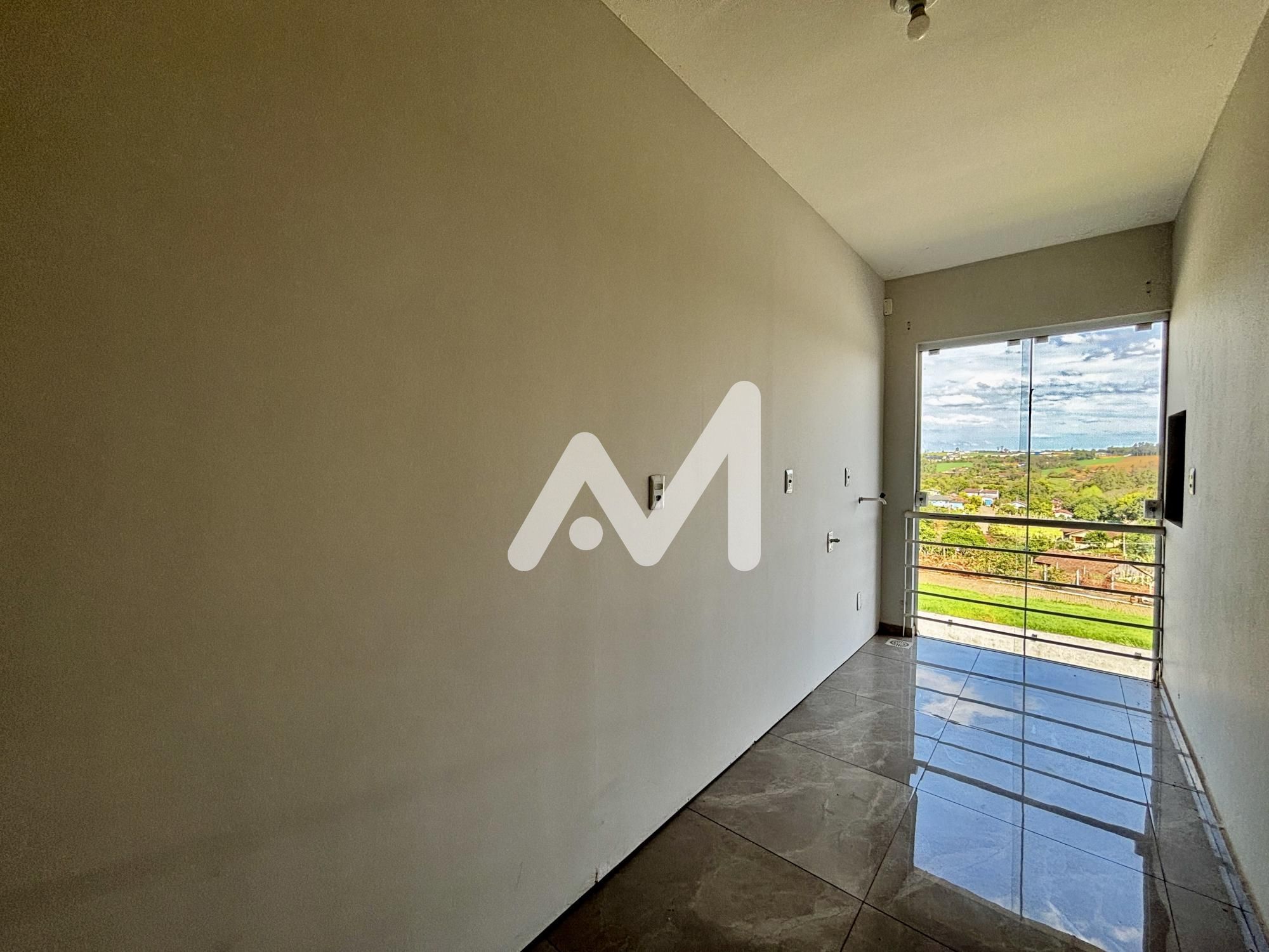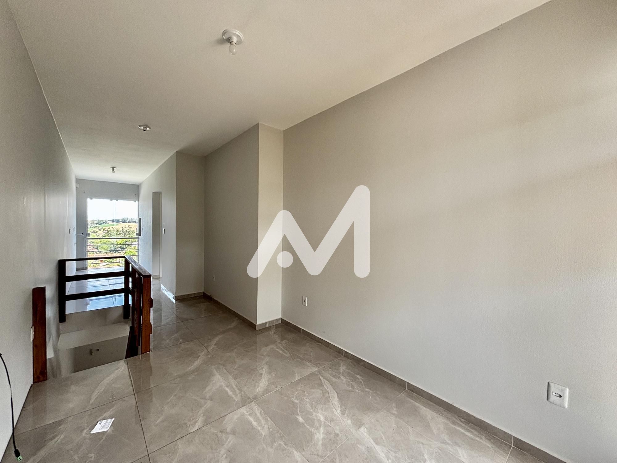 Belíssima casa geminada, composta por 02 dormitórios, cozinha, sala de estar/jantar, banheiro social, área de serviço, varanda, salão de festas, garagem para 01 carro, jardim, vista panorâmica.