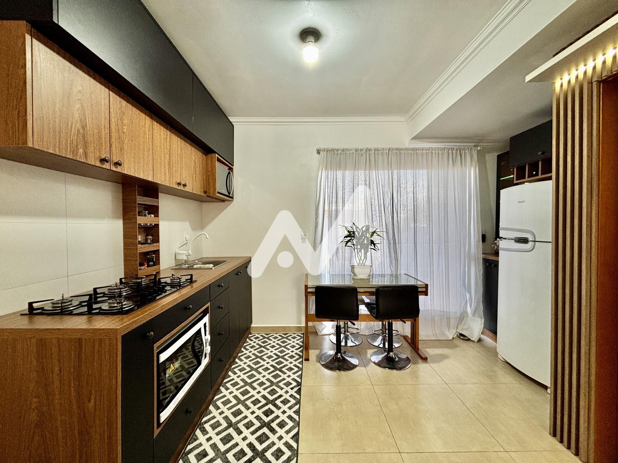 Lindo sobrado semimobiliado com móveis planejados, composto por 02 dormitórios, cozinha, sala de estar/jantar, quiosque, amplo pátio frente e fundos, garagem para 02 carros, portão eletrônico, cercado e murado.