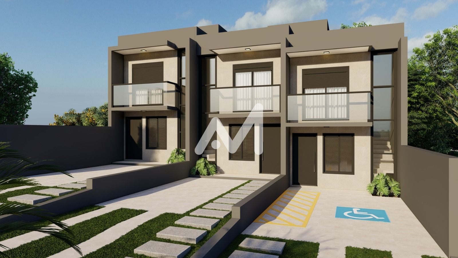 Sobrado composto por 02 dormitórios com suíte, cozinha, sala de estar/jantar, área de serviço, churrasqueira, lavabo, amplo pátio mmurado nos fundos e vaga para 02 carros.
