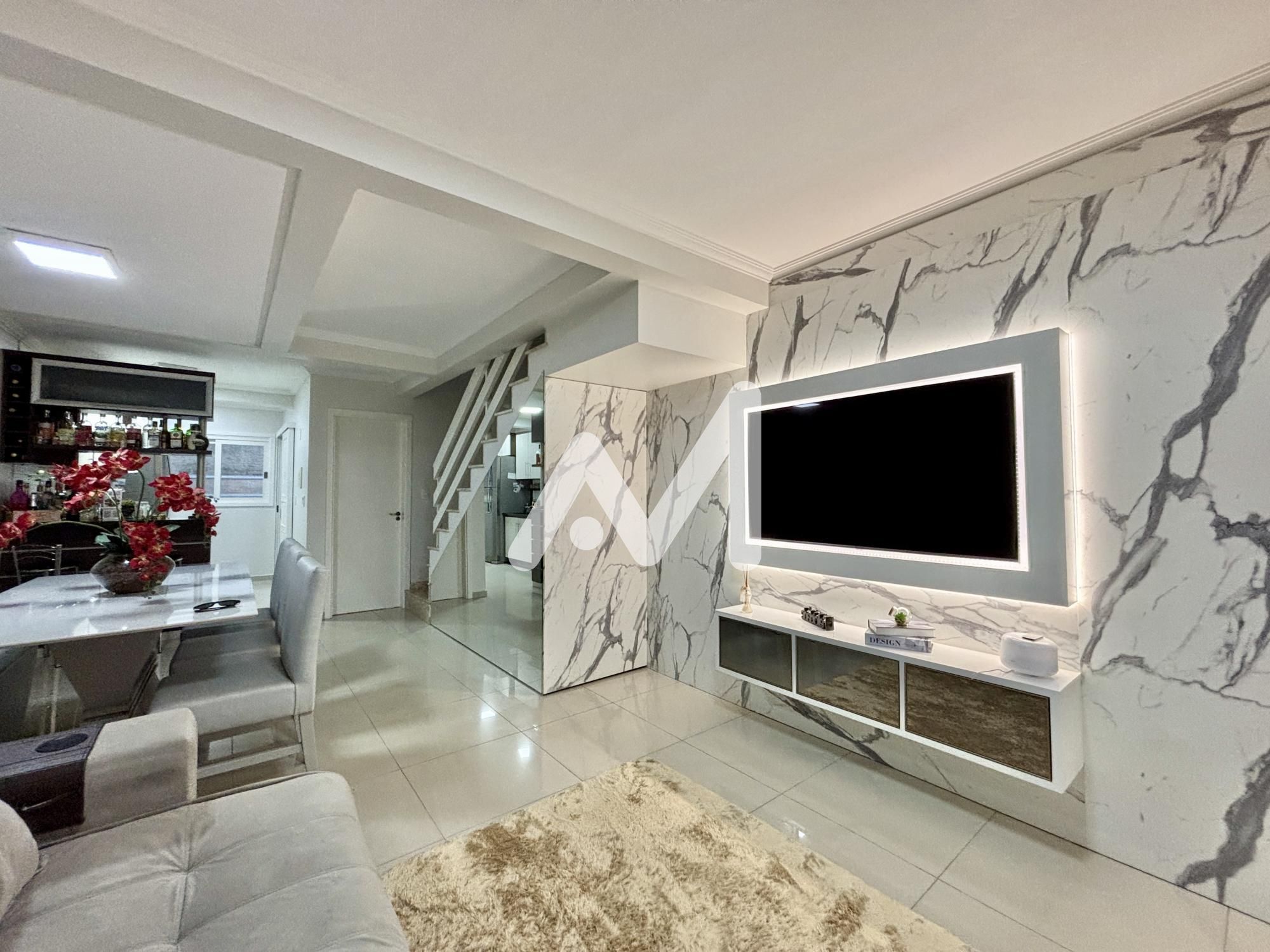Excelente sobrado semimobiliado com móveis planejados, composto 02 dormitórios, sala estar/jantar, cozinha, área de serviço separada, churrasqueira, lavabo, banheiro social, painel de energia fotovoltaica, garagem para 02 carros com portão eletrônico, piso porcelanato. Ficam móveis planejados.
